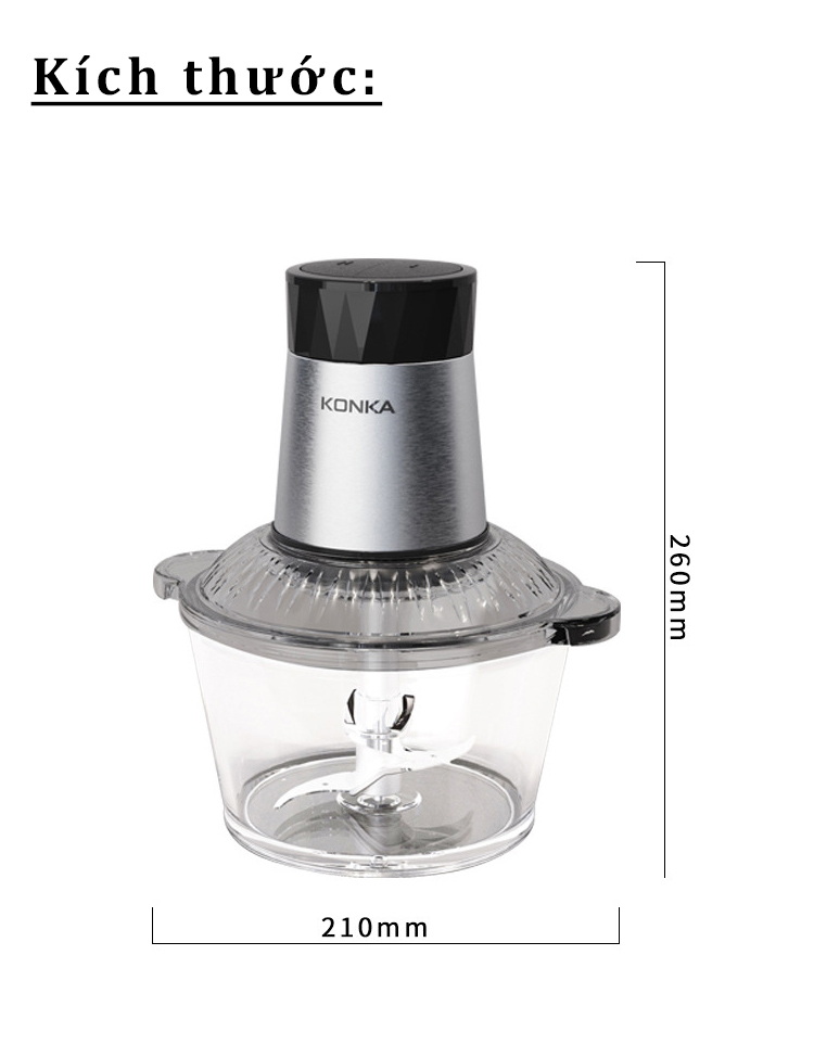 ✨Máy xay thịt đa năng KONKA KJ-FP201 Cối thủy tinh 2 Lít với 4 lưỡi inox 304 Công Suất 250W - HÀNG CHÍNH HÃNG