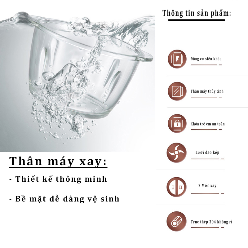 THỜI GIAN BẢO HÀNH : 12 THÁNG TẠI TRUNG TÂM BẢO HÀNH CỦA HÃNG. --------------------------------------------------- ĐẶC ĐIỂM CHUNG Dung tích cối 2 lít bằng thủy tinh cao cấp dày dặn, đảm bảo an toàn sức