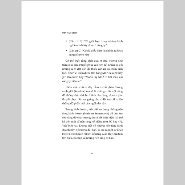 MBA Thực Chiến - cuốn sách được tác giả Shimada Tsuyoshi tuyển chọn từ khối kiến thức cơ bản về quản trị, kinh doanh và đang thường xuyên được nói tới trong các tình huống kinh doanh hay các lớp học MBA những nội dung đặc biệt quan trọng, những điểm tinh túy có ích cho thực tiễn và đã biên tập, tổng hợp làm sao để bạn đọc có thể học tập một cách nhẹ nhàng, dễ hiểu chỉ trong “một câu nói”.
