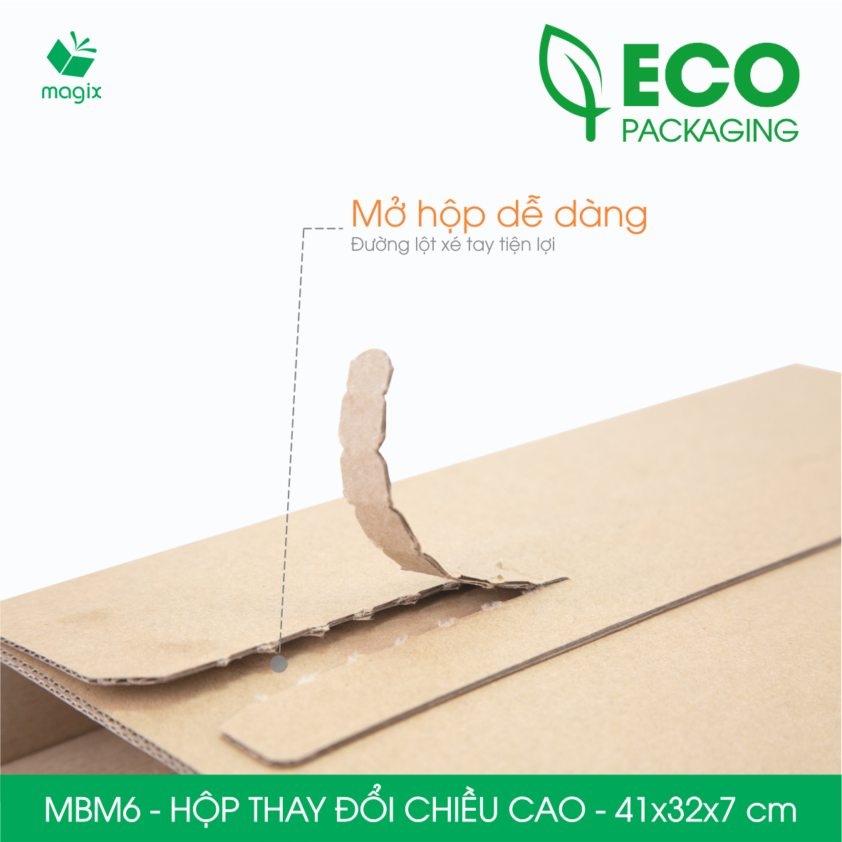 QUY CÁCH KỸ THUẬT Kích thước sản phẩm MBM1- 22x16x5 cm MBM2 - 25x17x6 cm MBM3 - 28x19x7 cm MBM4 - 32x22x8 cm MBM5 - 36x27x7 cm MBM6 - 41x32x7 cm Chất liệu: Carton sóng
