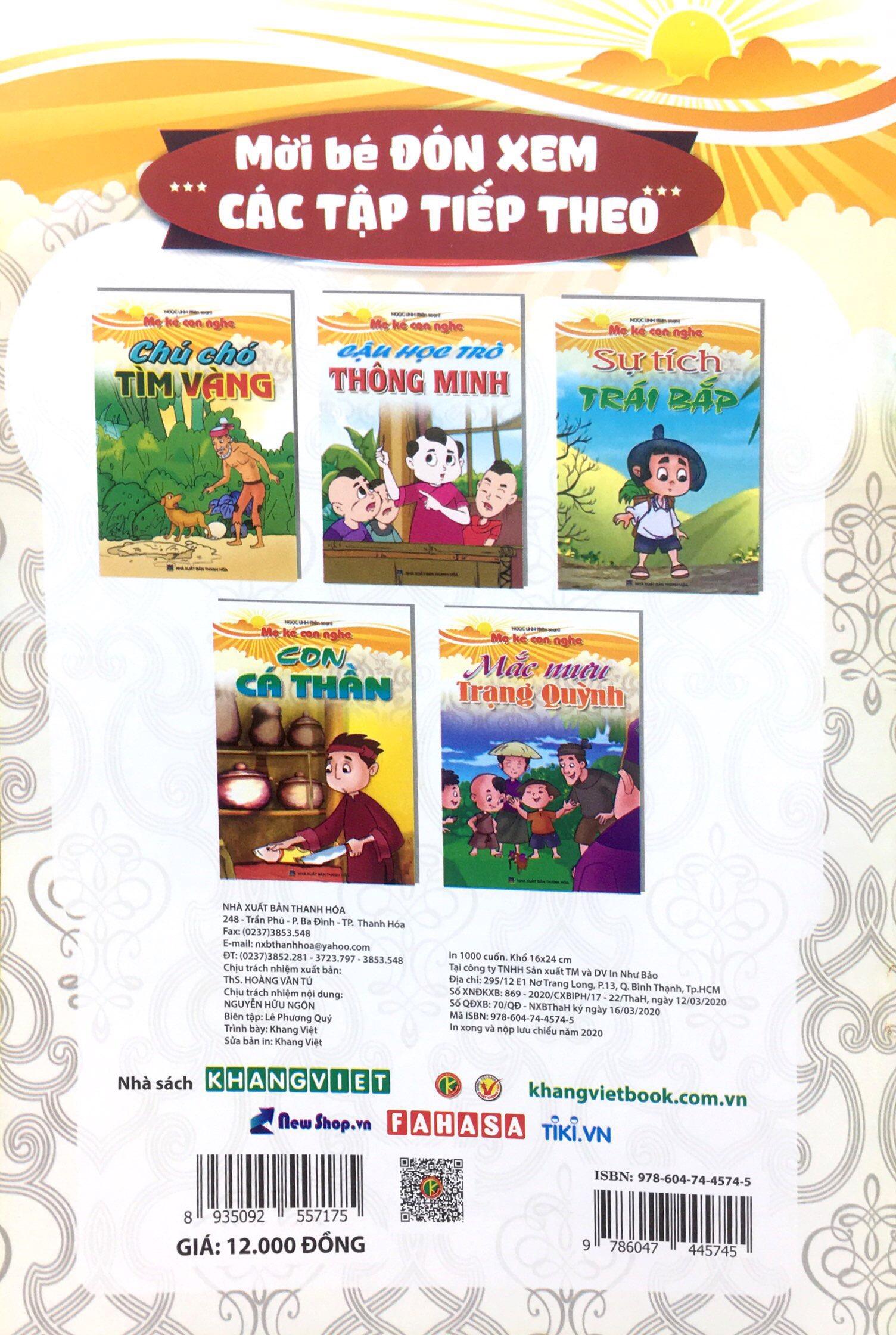 Với cách kể chuyện nhẹ nhàng, thủ thỉ cùng hình ảnh minh họa đầy màu sắc, bé yêu của bạn sẽ thêm hứng thú với những giây phút mẹ kể con nghe hàng ngày. Đó cũng là thời gian quý giá để bạn gần gũi bên con yêu, bồi dưỡng, xây đắp thói quen, tính cách, tâm hồn… cho con.