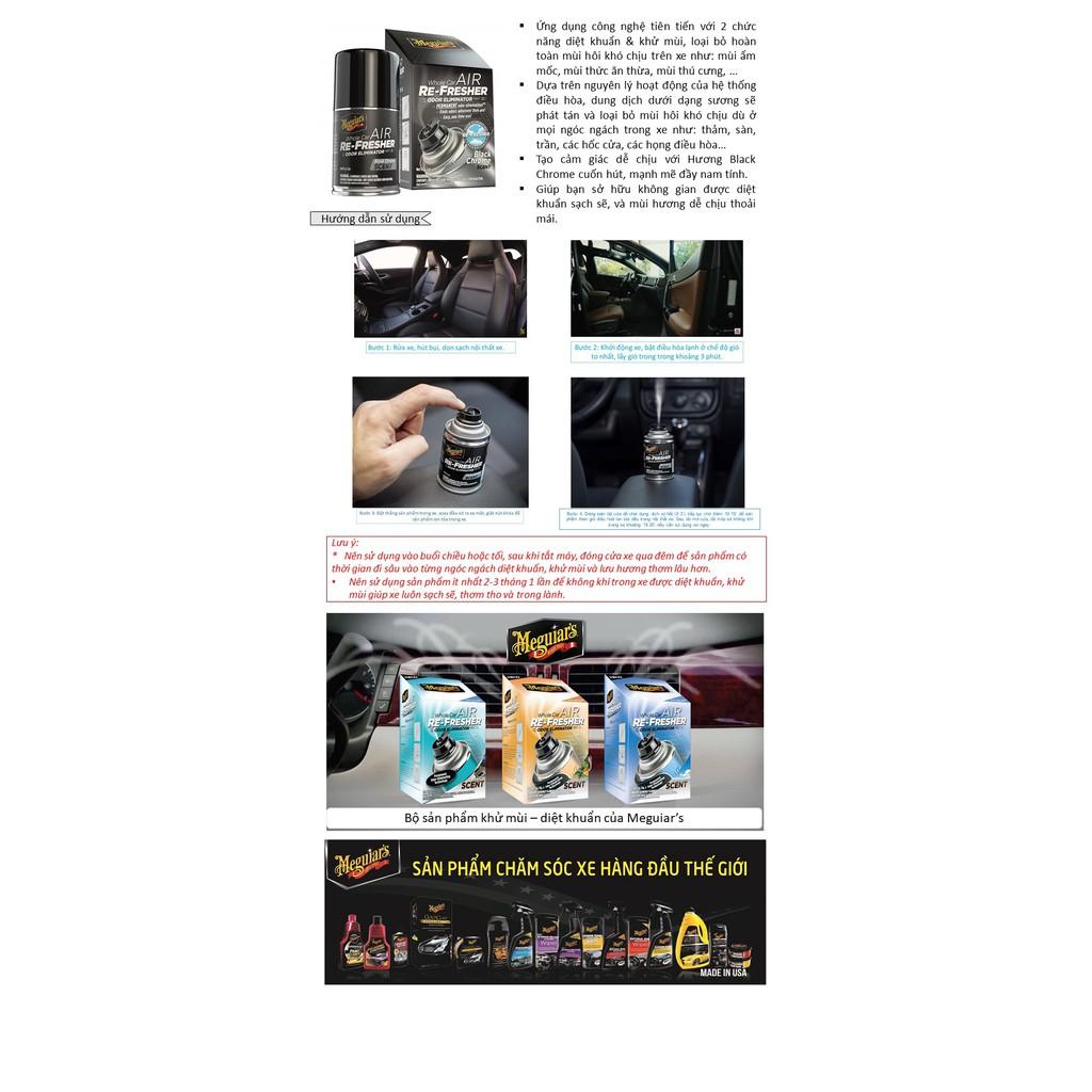 ✨Meguiar's Xịt khử mùi, diệt khuẩn nội thất ô tô Mùi hương nam tính ( xịt khử mùi ô tô) - Air Refesher - Black Chrome Scent - G181302, 57 g