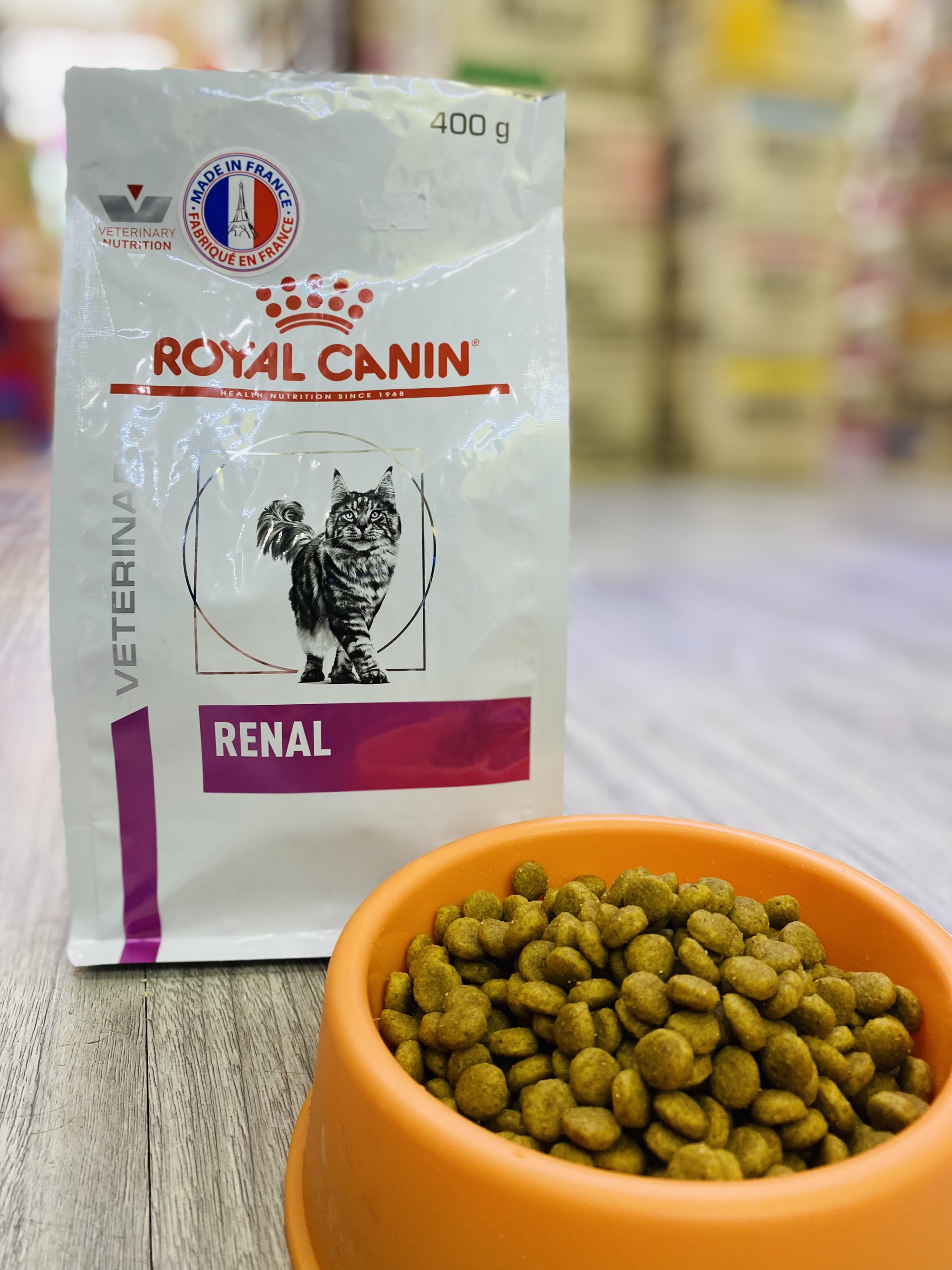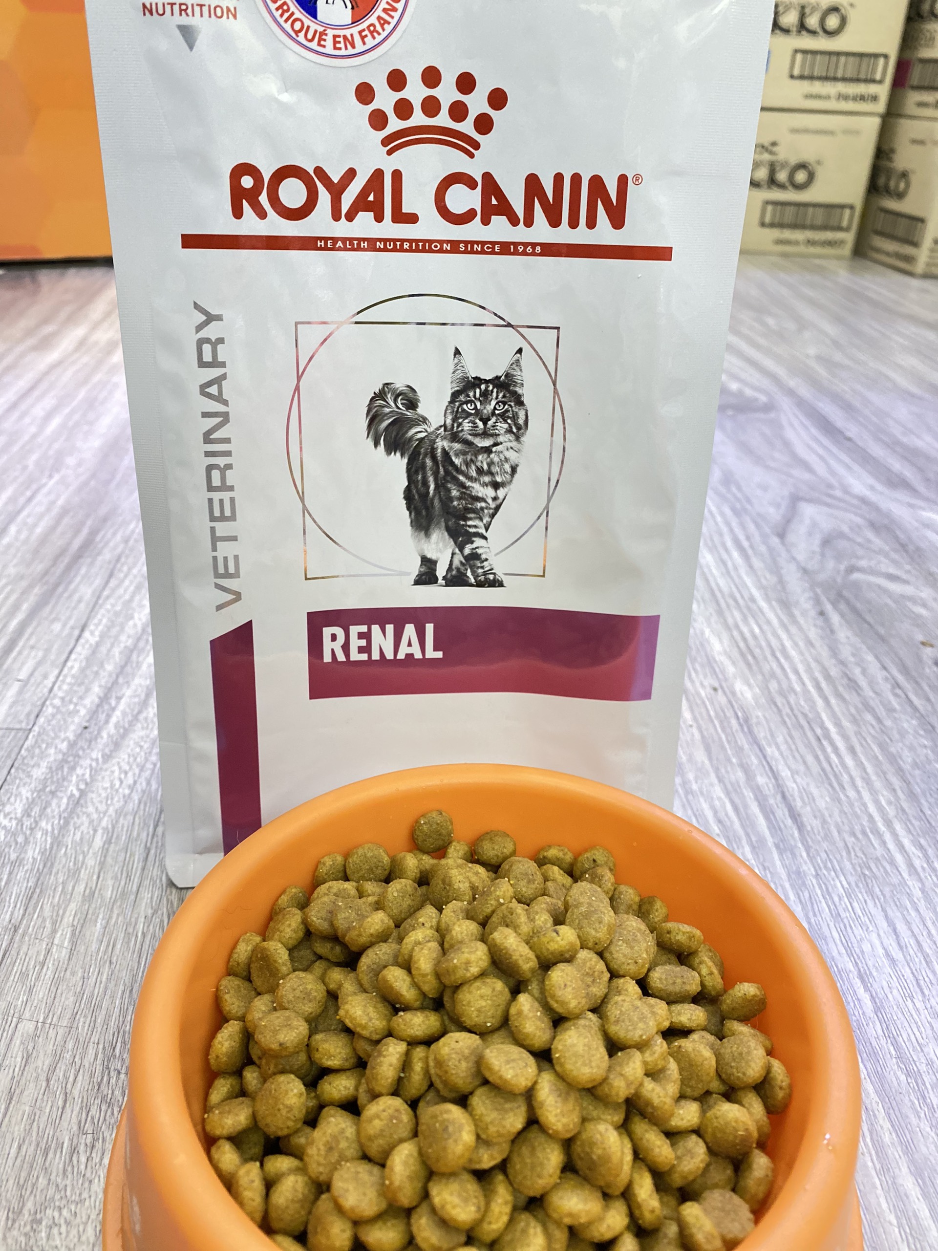 Cho mèo sử dụng chế độ ăn Royal Canin Renal ngay khi nồng độ creatinine* vượt khỏi chỉ số tham chiếu (CKD cuối giai đoạn 2) , trước khi tình hình biến xấu và chuyển thành bệnh mạn tính. Trong trường hợp mèo bỏ ăn có thể chuyển sang chế độ ăn Renal mà không cần bước chuyển đổi (quy tắc đổi thức ăn 7 ngày). Theo dõi sức khỏe thận ở mèo dựa vào bảng chỉ số khoáng chất trong máu (Renal panel): trường hợp lượng canxi trong máu tăng cao hoặc rối loạn chỉ số khoáng chất khác (VD: Hạ nồng độ Kali trong máu).Trong hầu hết các trường hợp, mèo có thể tiếp tục duy trì sử dụng Royal Canin Renal suốt đời.