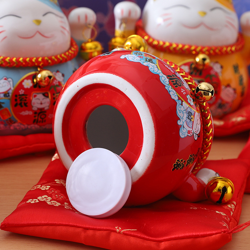 -Mèo thần tài lục lạc may mắn thu hút tài lộc , có khe để tiền , kèm đệm lót xinh xắn , đem nhiều may mắn đến cho gia chủ -Xuất xứ : Trung