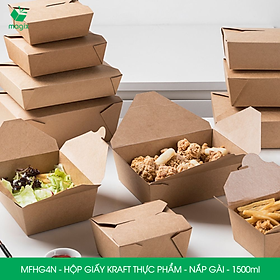• MFHG4N - Hộp giấy Kraft đựng thực phẩm - Nâu 1.500ml (Miệng: 21.5x16 cm - Đáy: 19.5x14 cm - Cao: 4.8 cm)