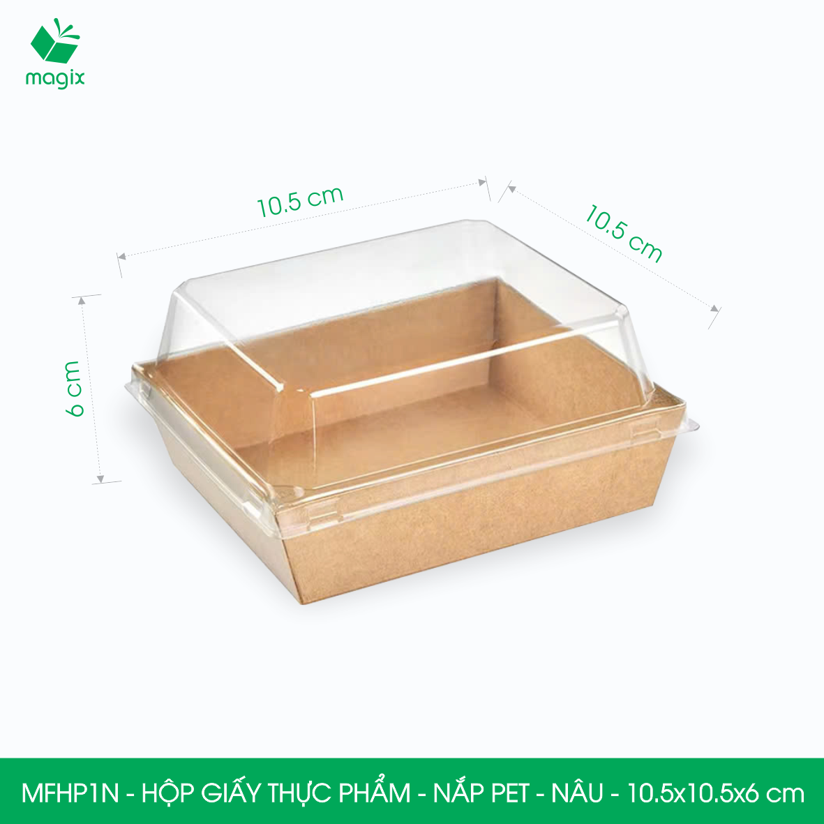 • MFHP1N - Hộp giấy Kraft thực phẩm nắp Pet - Nâu - 10.5x10.5x6 cm