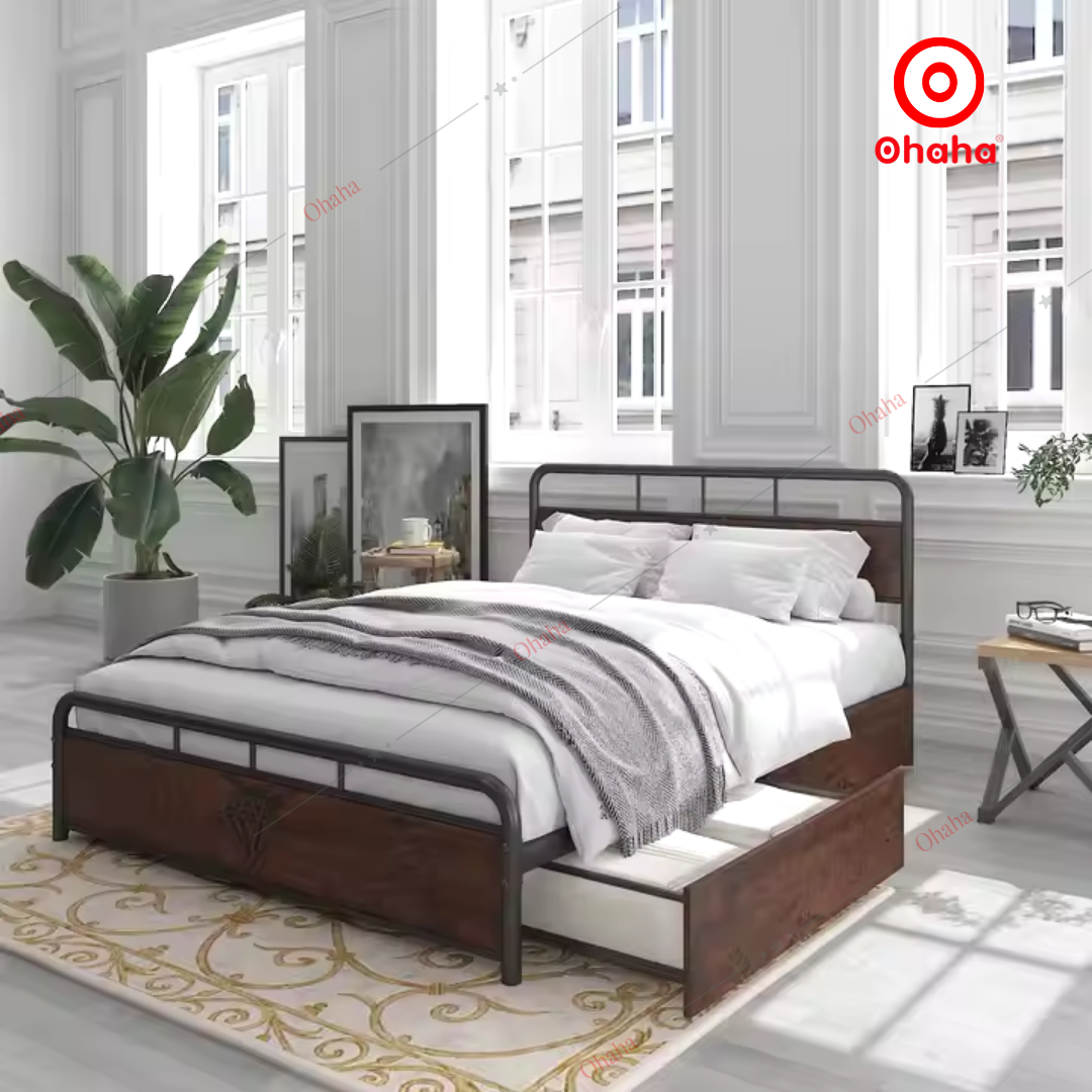 Giường ngủ sắt hiện đại Ohaha - GS007 mang đến sự an toàn được làm từ những thanh sắt dày dặn, vuông vức tạo cảm giác chắc chắn. Tấm gỗ đầu giường được trang bị kệ chức năng để đựng đồng hồ báo thức, kính mắt,… Bạn cũng có thể gắn 1 ổ cắm ở đầu giường tiện cho việc sạc điện thoại.