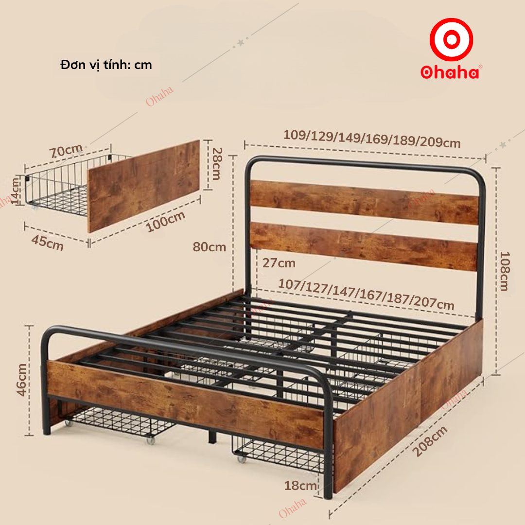 ** Sản phẩm chỉ bao gồm 1 giường, không bao gồm phụ kiện trang trí khác ** Giường ngủ sắt hiện đại Ohaha - GS009 là 1 mẫu giường hiện đại với thiết kế thông minh thoáng