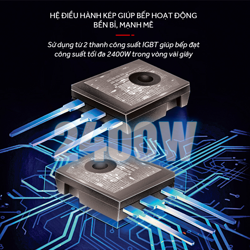 Tính Năng Sản Phẩm Công suất : 1400W+1800W+2200W Chức năng BOSTER thông minh, tự động nâng công suất lên mức tối đa dù đang ở mức công suất nào : 1800W+2000W+2400W Chế độ nấu hiển