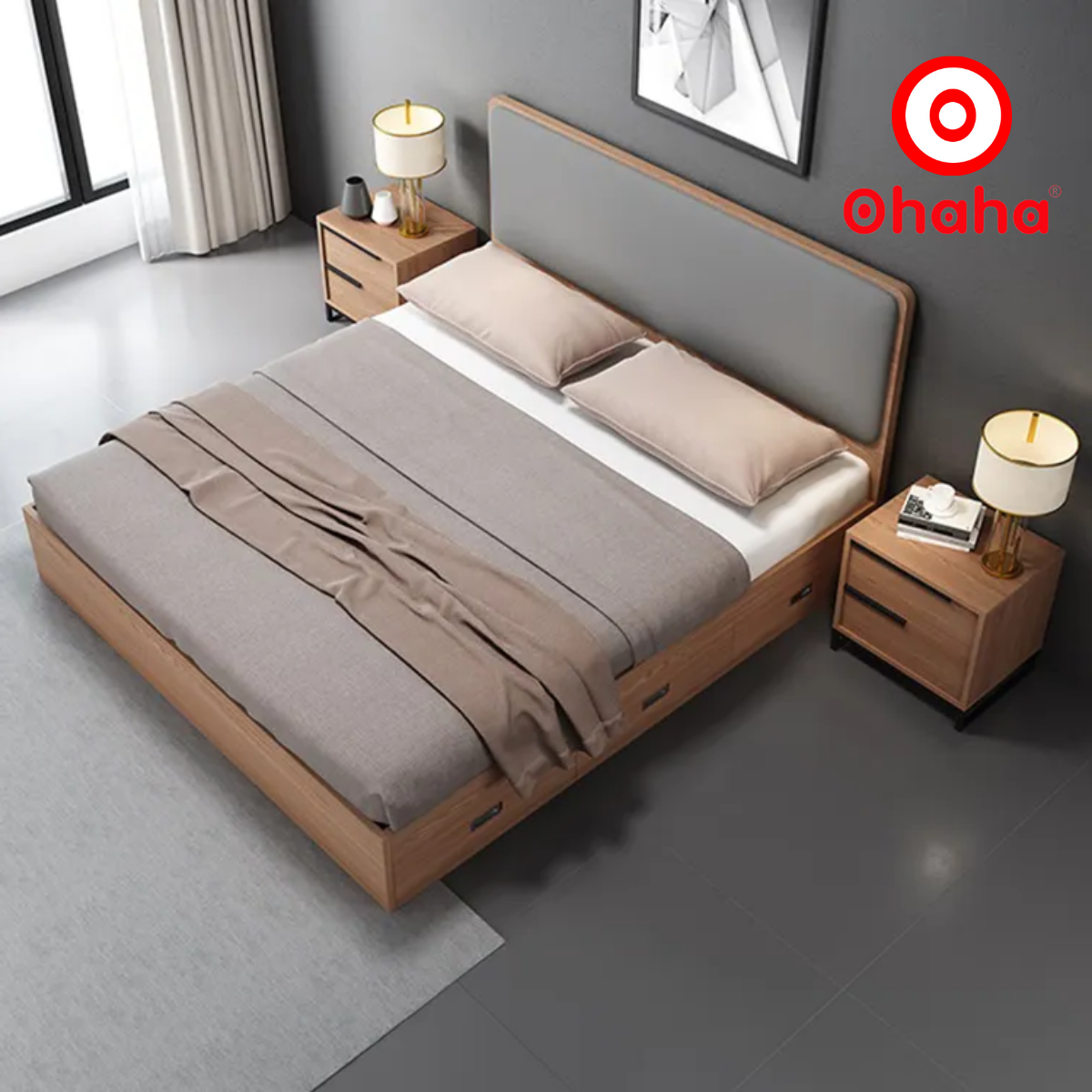 GIƯỜNG NGỦ GỖ CÔNG NGHIỆP BỌC NỆM OHAHA - GN015: TINH TẾ VÀ TIỆN DỤNG