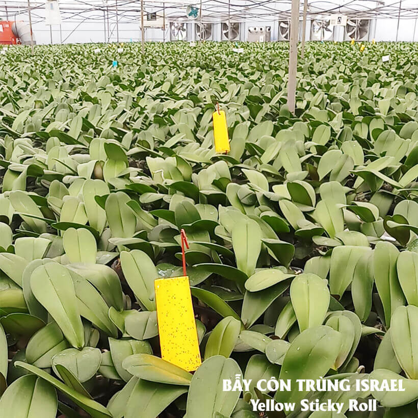 BẪY CÔN TRÙNG ISRAEL TRONG HOA CÚC TRANG TRẠI NÔNG NGHIỆP + Bẫy côn trùng ISRAEL (Sticky Yellow Roll) là dạng bẫy dính hấp thụ côn trùng bằng màu sắc với một lớp keo mỏng