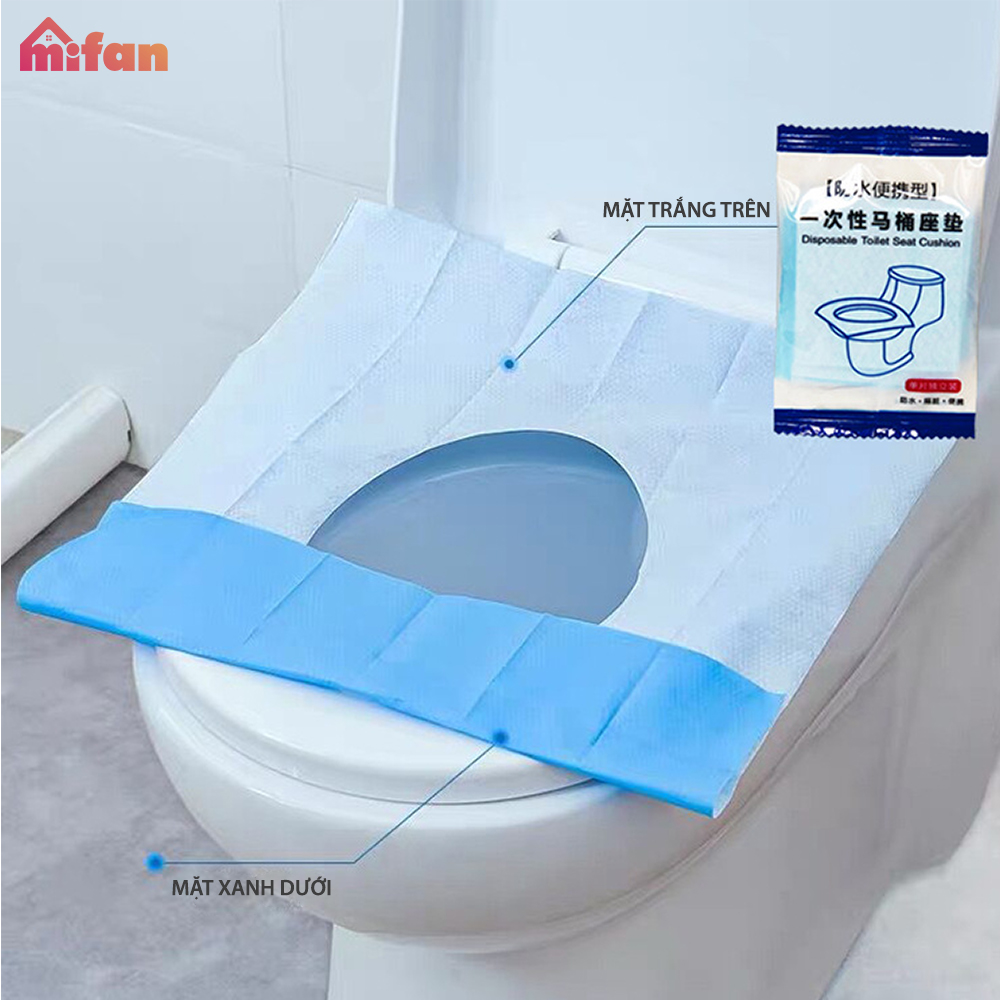 Miếng lót toilet dùng 1 lần, vệ sinh – tiện lợi, Thiết kế có thun, ôm sát nắp bồn cầu, không xô lệch, Dùng khi đi du lịch, nơi công cộng, toilet khách sạn, bệnh