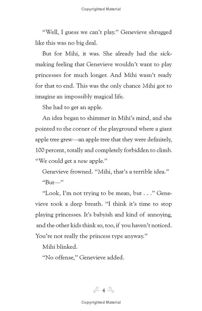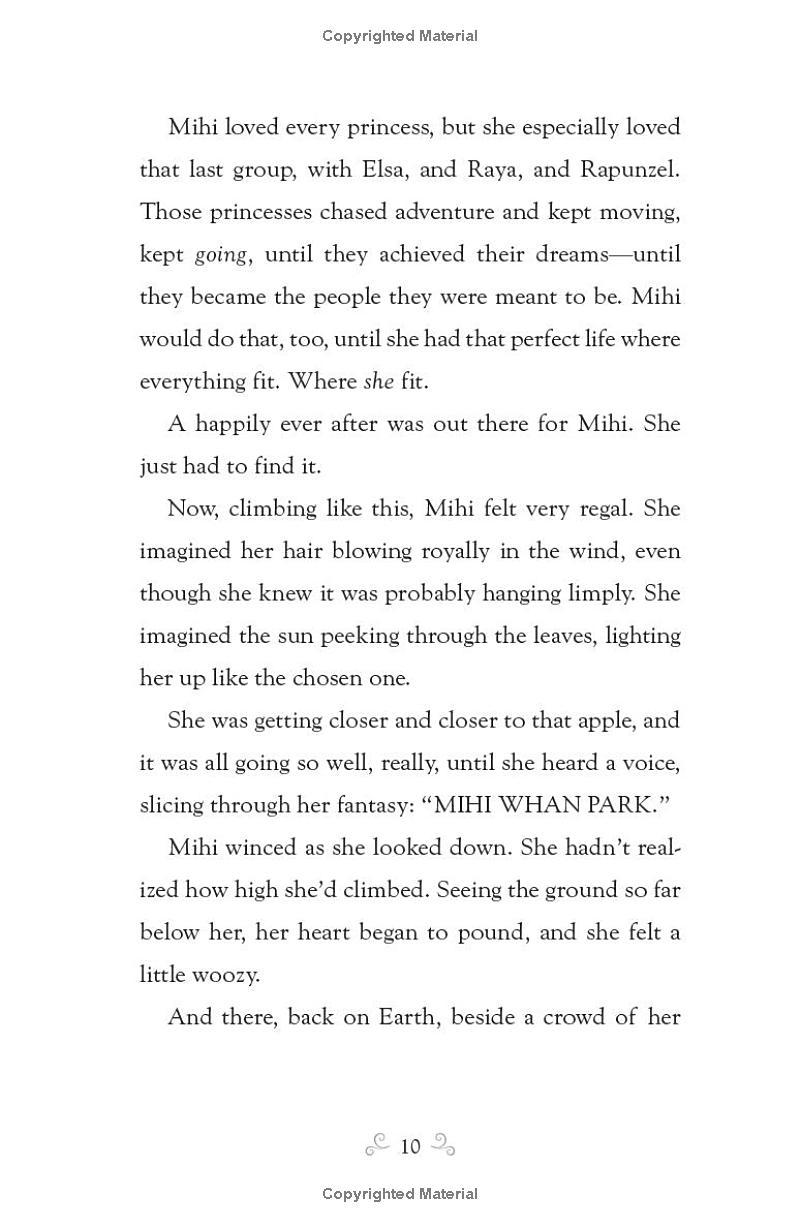 Mihi Whan Park loves fairy tales. She wants to be a princess more than anything, but everyone tells her she’s not the princess type. Then Mihi gets her shot: When she and her new friends Savannah and Reese discover a portal to a fairy tale realm, they get a chance to learn how to be princesses! But the fairy tale world turns out not to be the wonderful place Mihi imagined. Soon, Savannah and Reese decide they’re ready to go home, and Mihi has to decide where her loyalties lie: With her friends and her future at home, or with her princess dreams?