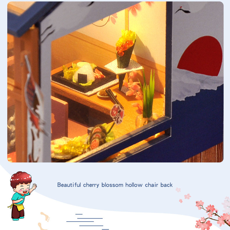 ✨Mô hình nhà búp bê lắp ghép bằng gỗ Mẫu Sushi Shop tặng kèm dụng cụ lắp ghép, keo silicon