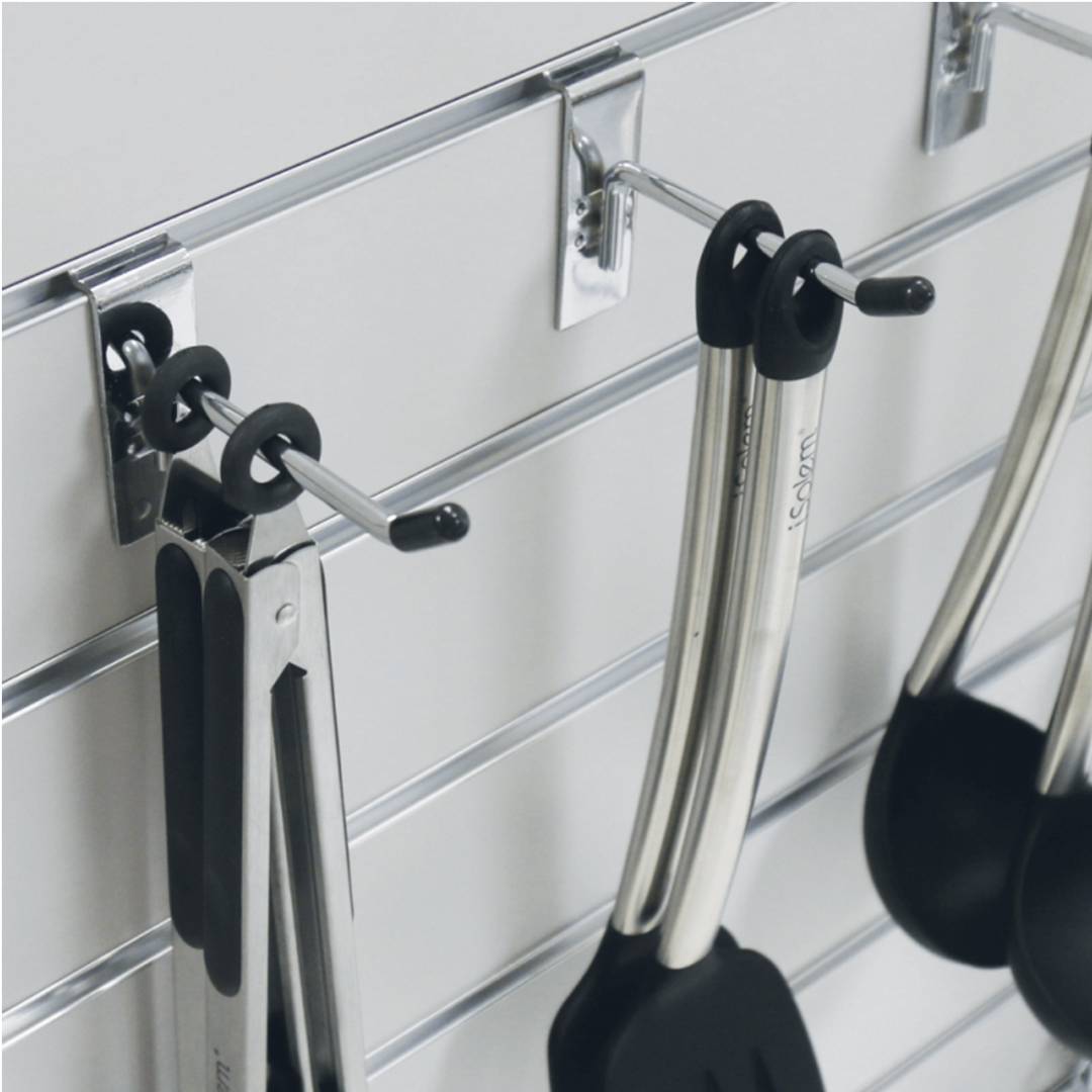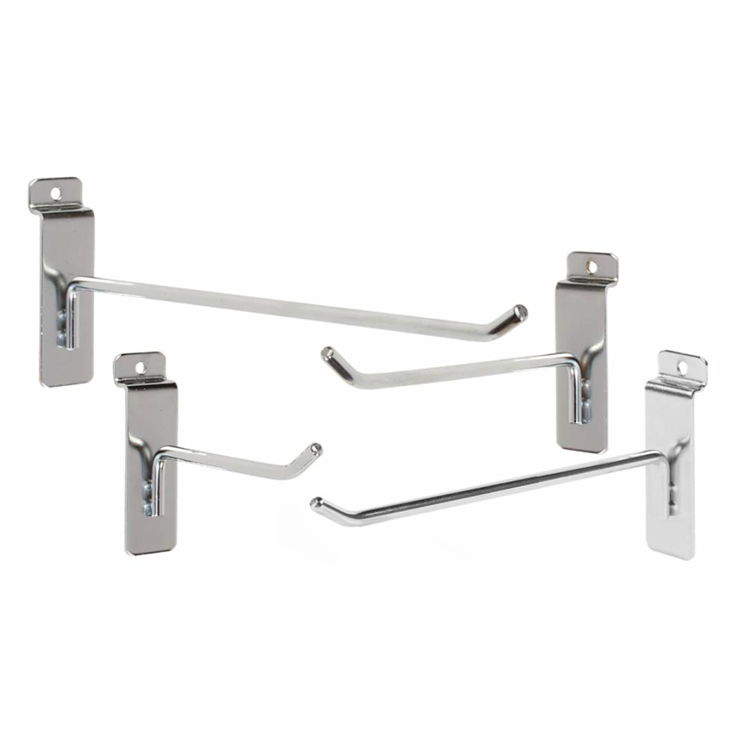 Móc đơn Slatwall là phụ kiện không thể thiếu đi kèm với bảng gỗ xẻ rãnh Slatwall & Dash Panel giúp mang đến sự gọn gàng & chuyên nghiệp cho hàng hóa trưng bày. Móc Slatwall được làm bằng thép và xi mạ niken sáng bóng cao cấp. Phù hợp sử dụng với các sản phẩm có kích cỡ từ nhỏ tới trung bình. Sản phẩm được cung cấp với 4 kích thước chiều dài là: 10cm | 15cm | 20cm | 30cm.