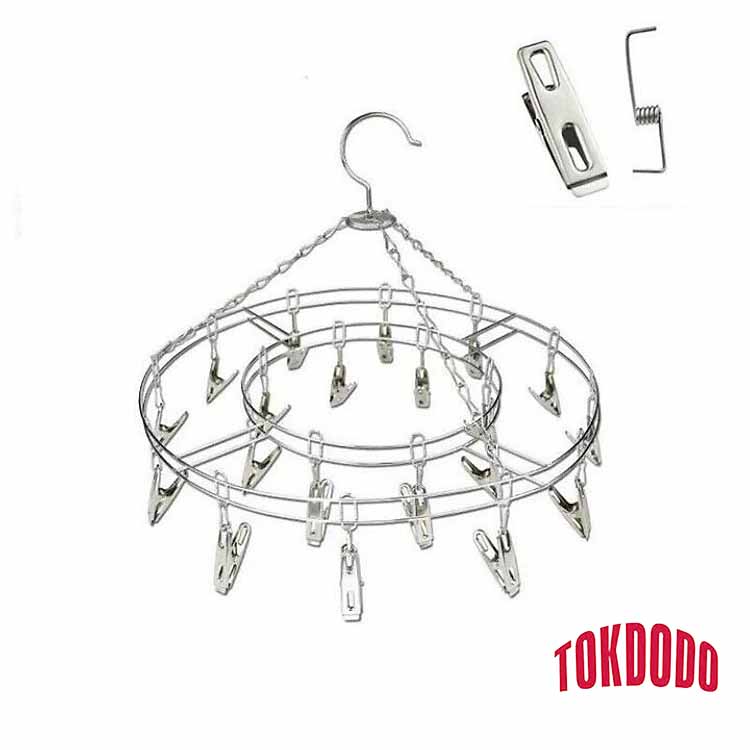 Móc Treo Quần Áo, Móc Phơi Đồ Trẻ Em Inox Kẹp Chống Rơi Kiểu Tròn 24 Kẹp Thương Hiệu TOKDODO Móc treo quần áo, đồ trẻ em, tất vớ tiện lợi với kẹp chống rơi
