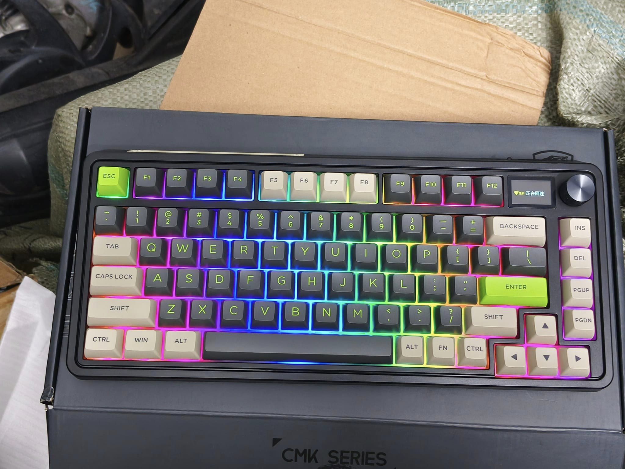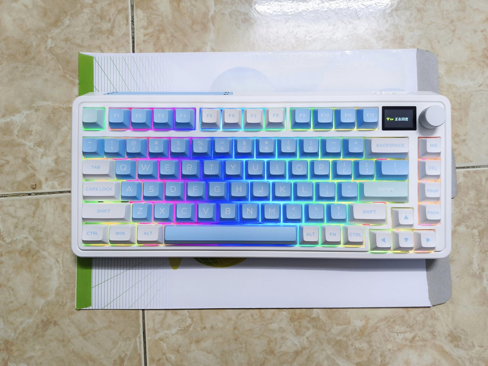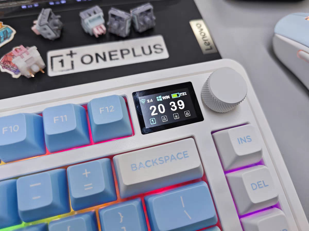 CMK75SAM được hãng FL·Esports vô cùng ưu ái. hãng đã mạnh dạn trạng bị thêm cho em bàn phím này màn hình hiển thị TFT đầy màu sắc. Màn hình TFT này sẽ hiển thị các cài đặt khác nhau như ngày, giờ, chế độ hệ thống đang hoạt động, chế độ kết nối,…Nó cũng có thể được tùy chỉnh với các hình ảnh và hoạt ảnh gif khác nhau. Người dùng có thể tải tối đa 5 hình ảnh và 1 ảnh động gif trên cấu hình bàn phím.