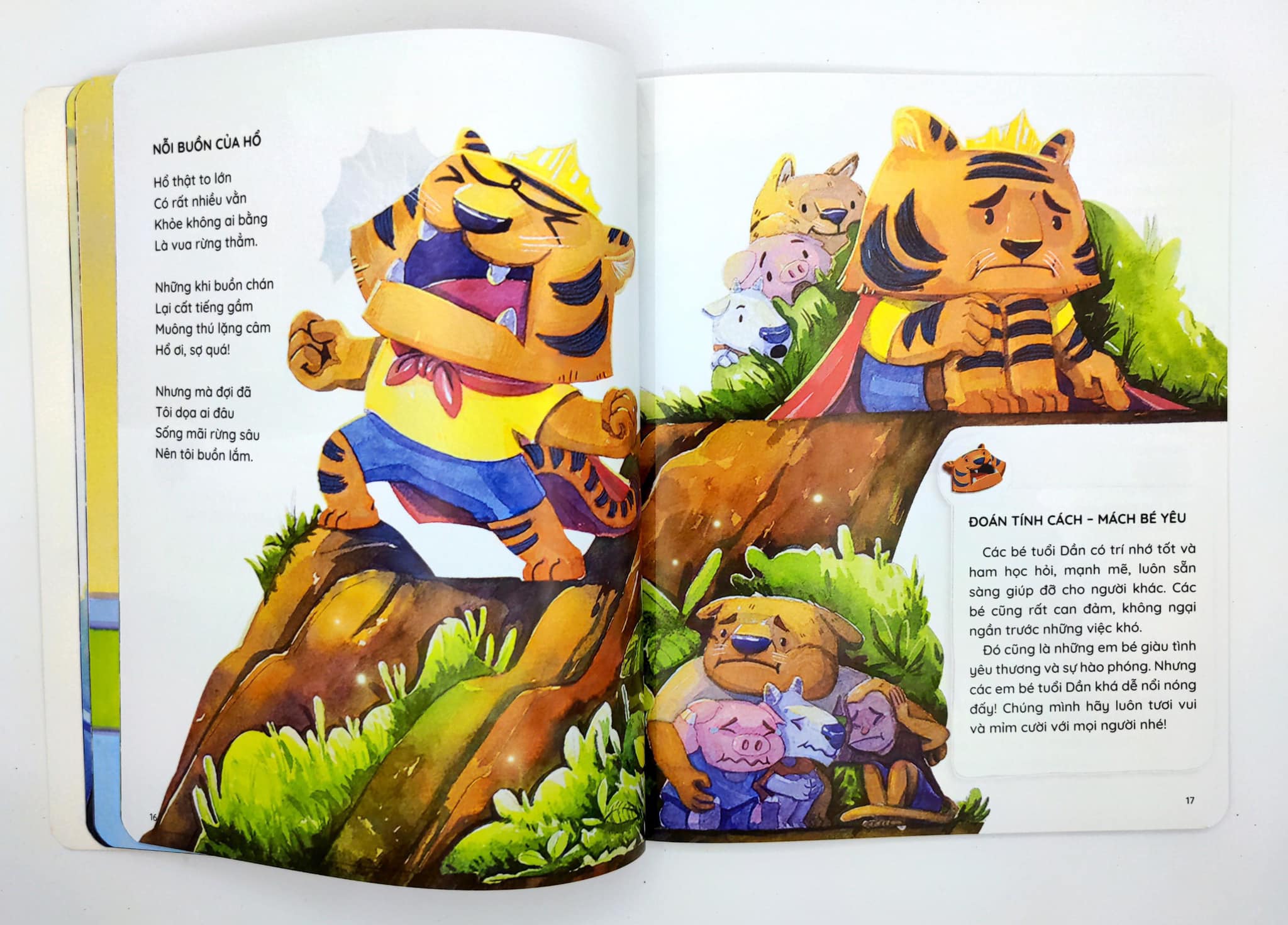 Sách có nhiều bài thơ, có phần xét tính cách theo ngày tháng năm sinh, lại có cả những trò chơi tương tác dựa theo đặc tính của từng con vật, rất thú vị.