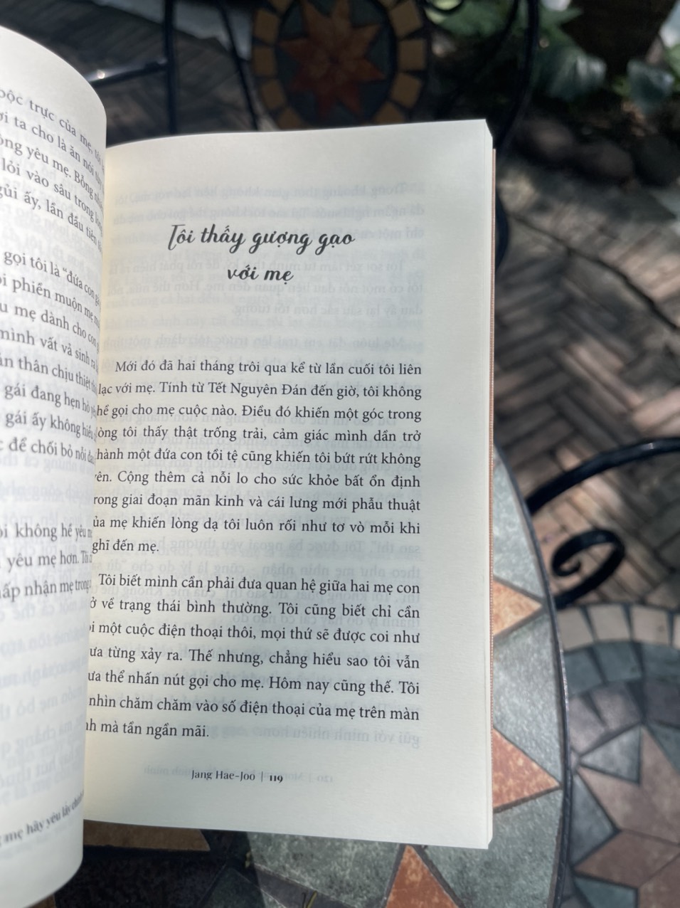 “Tôi thầm nghĩ khi đăm đăm nhìn theo bóng lưng mẹ, rằng mong mẹ hãy yêu lấy chính mình, giống như mẹ yêu tôi. Mong sao trong từng khoảnh khắc, dù là lúc rửa bát, dọn dẹp hay nấu cơm, mẹ cũng đừng quên bản thân là sự hiện diện vĩ đại, đáng quý và đẹp đẽ biết nhường nào. Tất cả những điều mẹ làm dưới danh xưng “mẹ” đều xứng đáng được trân trọng. Hy vọng mẹ trở thành một người mẹ biết khích lệ chính mình. Một người mẹ thỉnh thoảng biết tự thưởng cho bản thân, biết làm những điều tốt đẹp cho chính mình, chứ không phải hy sinh tất cả vì người khác. Một người mẹ hiểu rằng chính mình cũng phải tỏa sáng thì gia đình mới trở nên lấp lánh được.