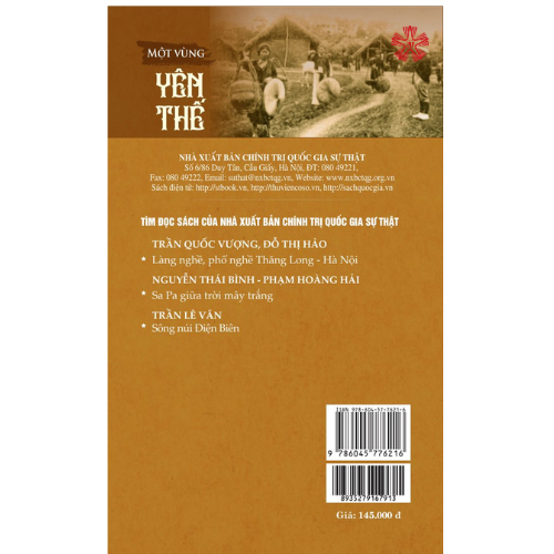 Mua tại TiktokNhằm đáp ứng nhu cầu nghiên cứu, tìm hiểu của bạn đọc về vùng đất và con người Yên Thế, Nhà xuất bản Chính trị quốc gia Sự thật xuất bản cuốn sách Một vùng Yên Thế do các tác giả Nguyễn Xuân Cần và Anh Vũ biên soạn. Ngoài Mở đầu, Lời kết, cuốn sách chia làm ba phần: Phần thứ nhất: Giới thiệu vùng đất Yên Thế trong lịch sử dân tộc; những nét đặc sắc về đất rừng, địa lý, giao thông, làng xóm; những đặc sản, tập tục làng quê, những phiên chợ, nghề thủ công... Phần thứ hai: Giới thiệu về các nhân kiệt gắn với các cuộc khởi nghĩa của người anh hùng dân tộc Hoàng Hoa Thám và các tướng lĩnh nghĩa quân tiêu biểu... Phần thứ ba: Giới thiệu các di tích lịch sử, văn hóa tiêu biểu ở địa phương.