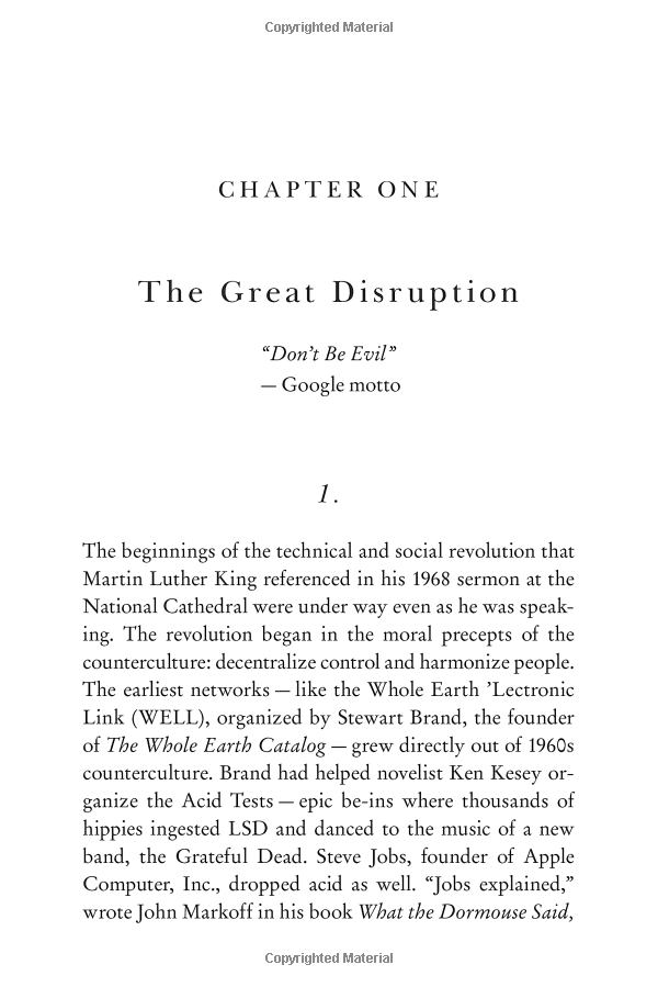 A stinging polemic that traces the destructive monopolization of the Internet by Google, ok and Amazon, and that proposes a new future for musicians, journalists, authors and filmmakers in the digital age.