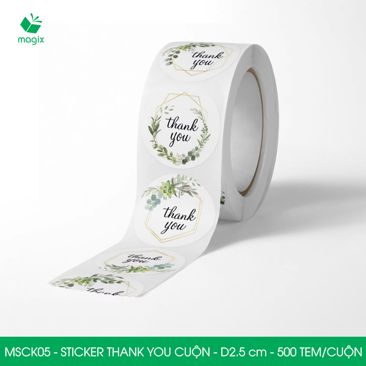 ✨MSCK05 - D2.5 cm - 1 Cuộn 500 sticker thank you tròn, nhãn dán thank you, tem dán cảm ơn