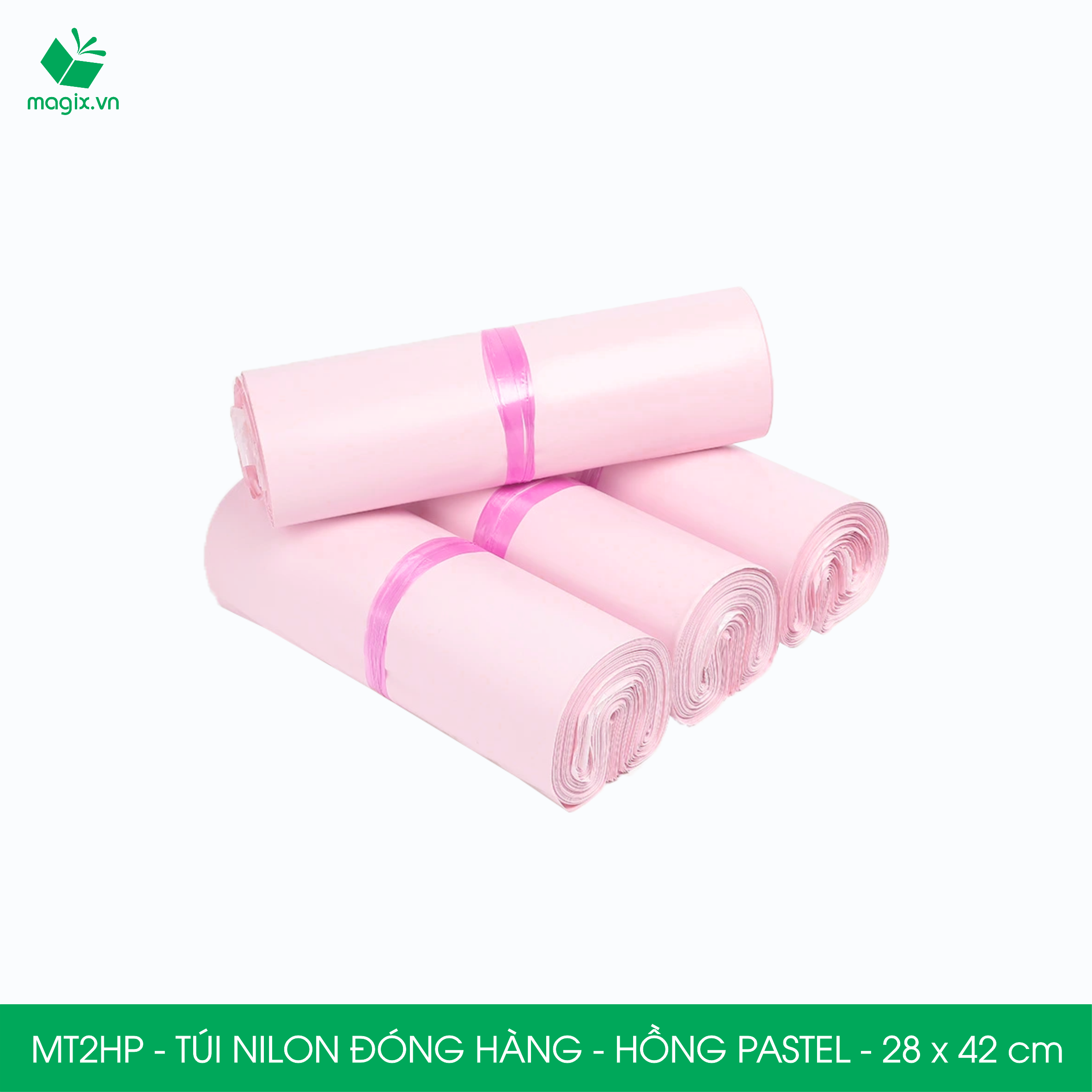 ✨MT2HP - 28x42 cm - Túi nilon gói hàng - 100 túi niêm phong đóng hàng màu hồng pastel