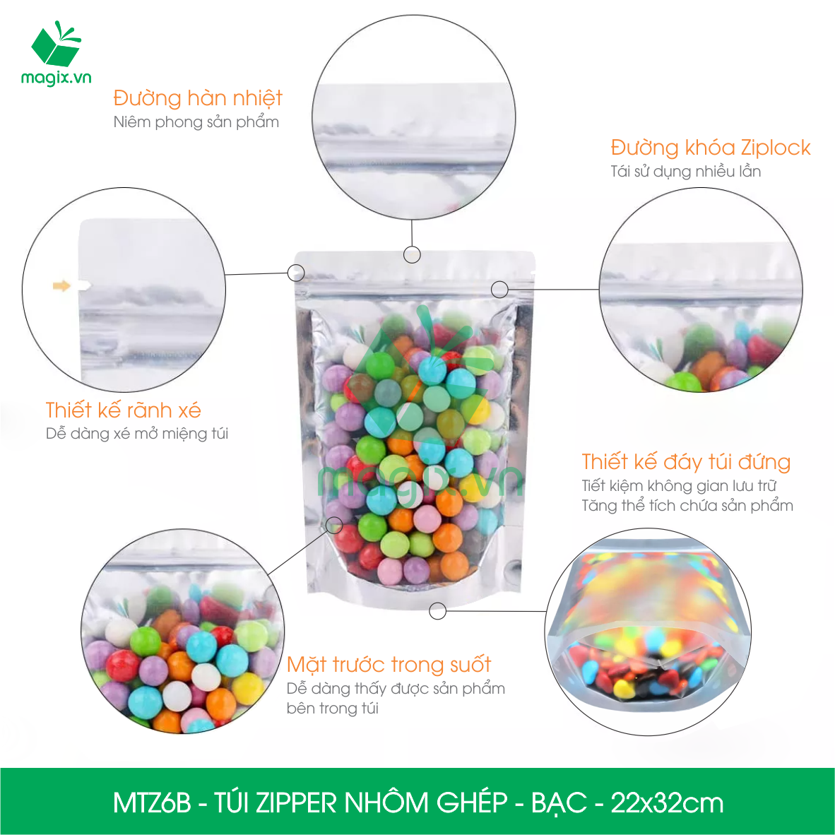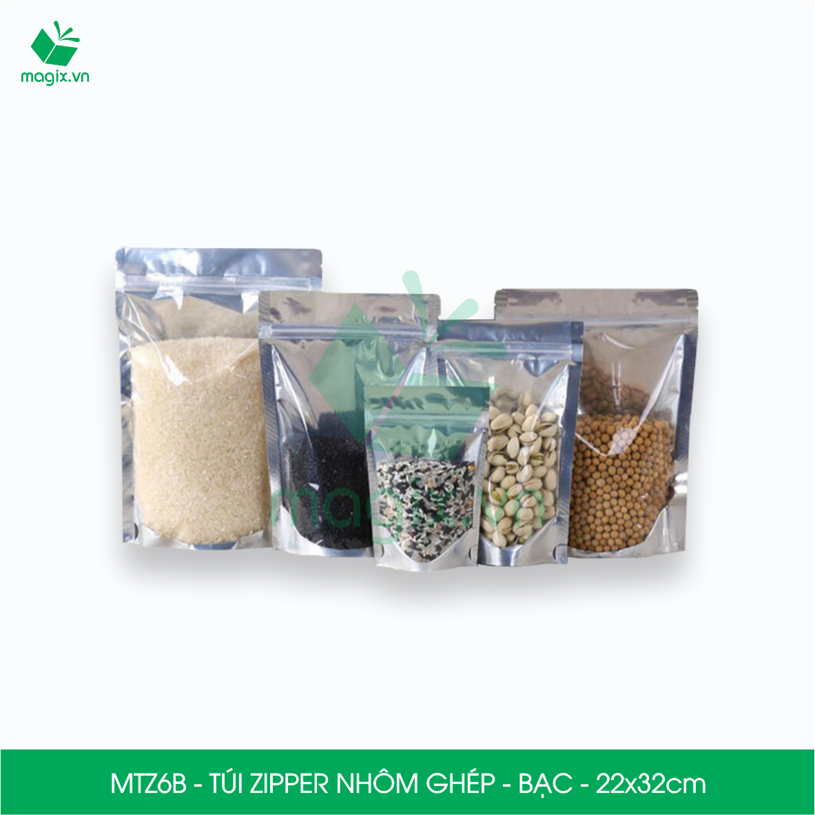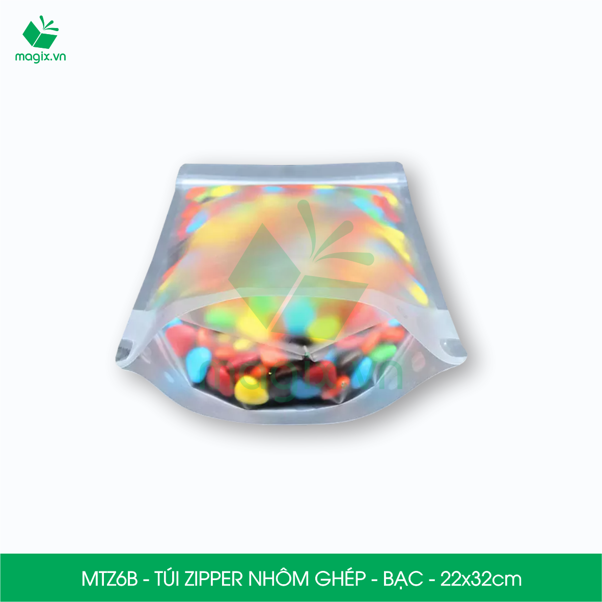 ✨MTZ6B - 22x32cm - Combo 25 Túi Zipper Bạc đáy đứng, một mặt trong