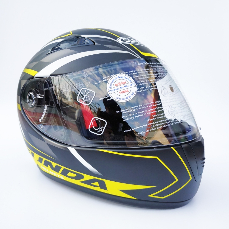 ✨Mũ bảo hiểm fullface chính hãng Sunda 2000c đen nhám tem vàng