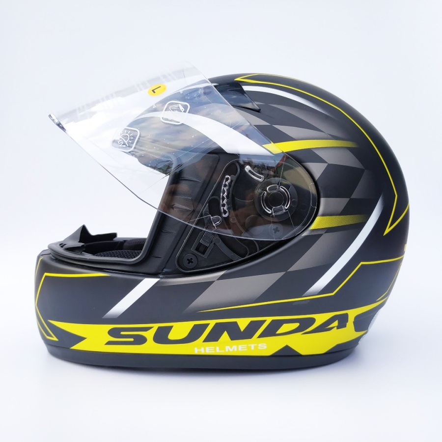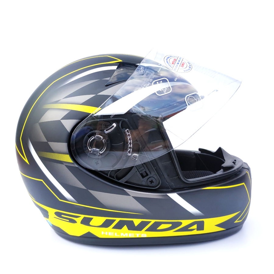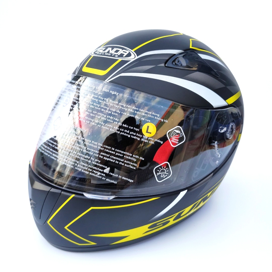 Mũ bảo hiểm fullface chính hãng Sunda 2000c đen nhám tem vàng là sản phẩm được cải tiến từ mẫu Andes/Sunda 2000A vốn được sản xuất để xuất khẩu phục vụ chủ yếu cho thị trường