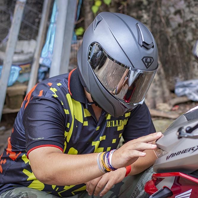 Kính chắn cản bụi và đất đá, tầm nhìn trong, rộng, chốt kính được thiết kế ngay phía trước cùng với gờ lật kính được thiết kế cả hai bên trái, phải, giúp người đội dễ dàng thao tác lật kính khi di chuyển.