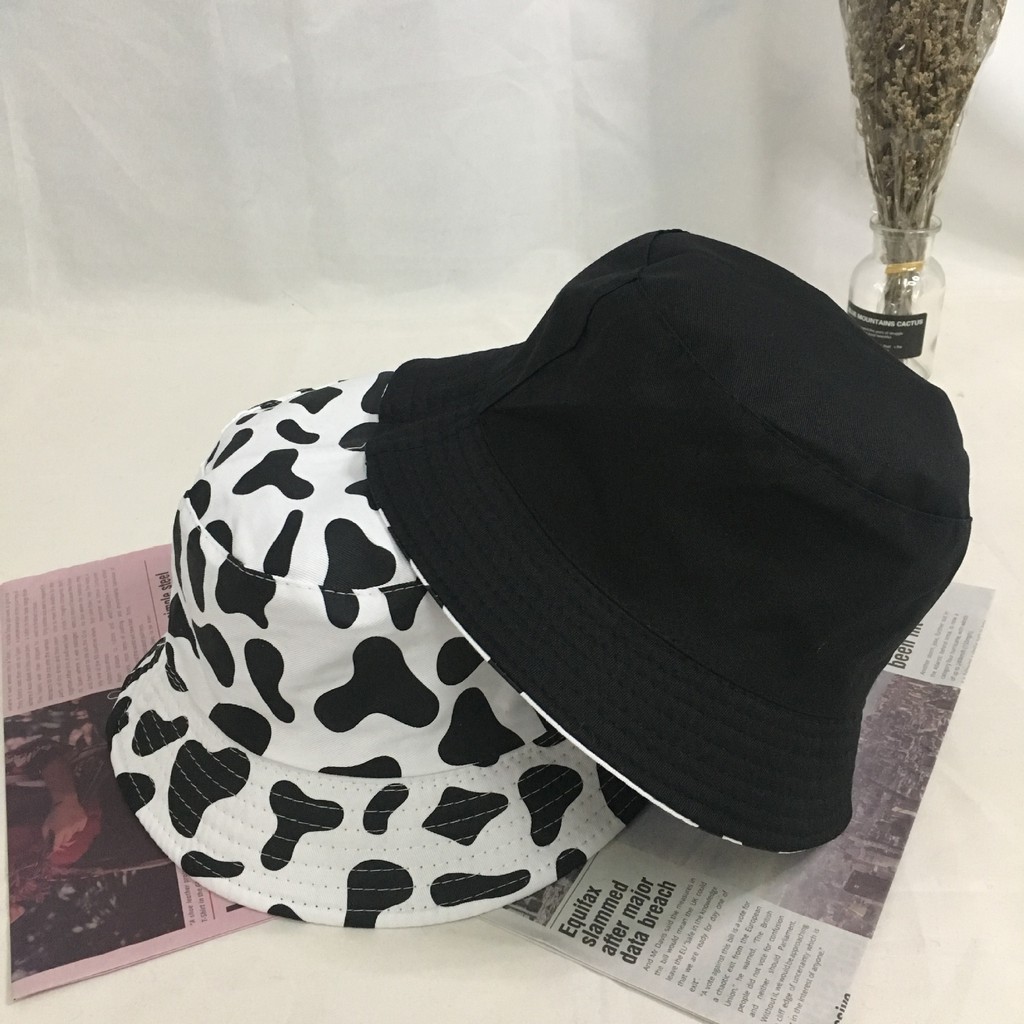 Mũ vành 2 mặt, bucket hat họa tiết bò sữa dễ thương