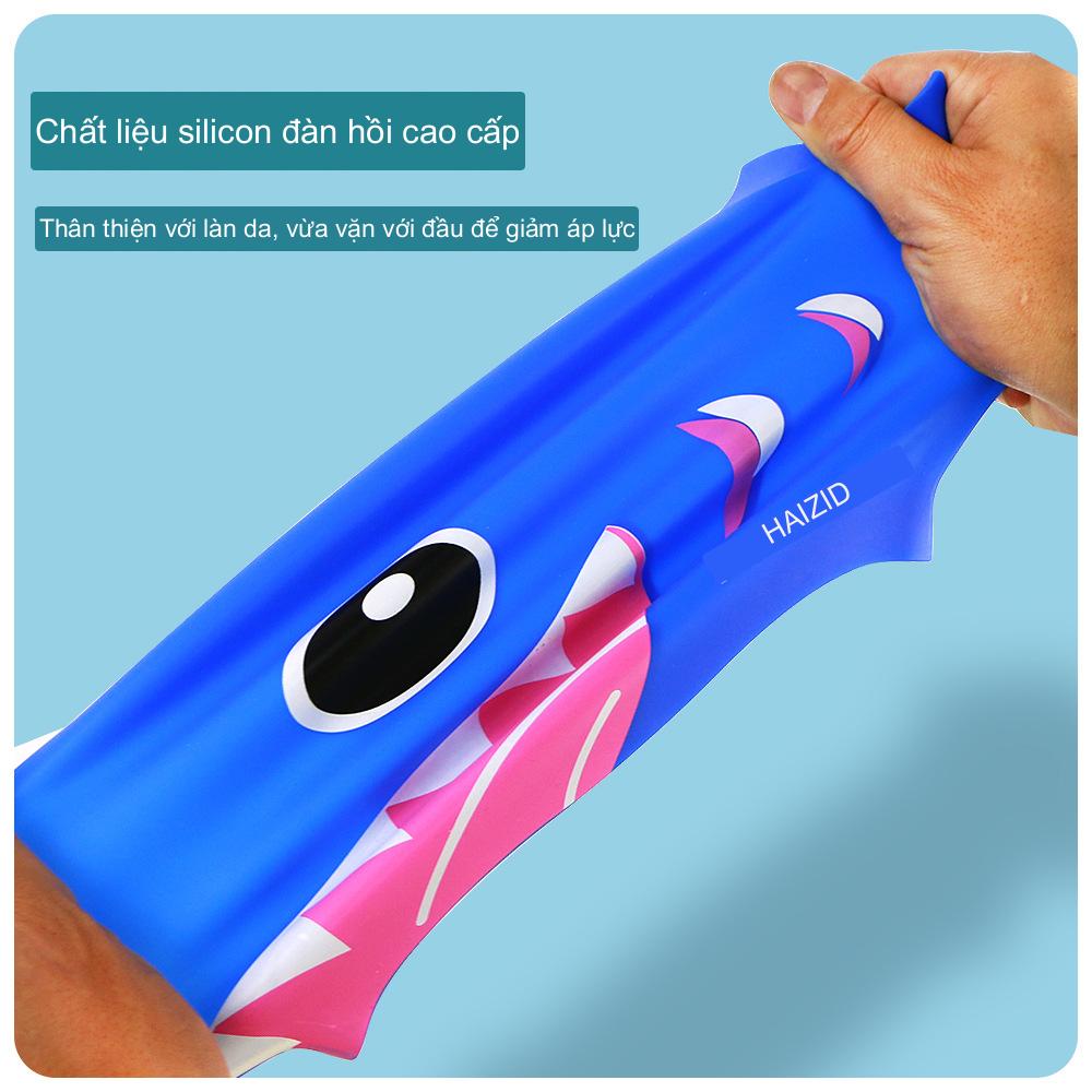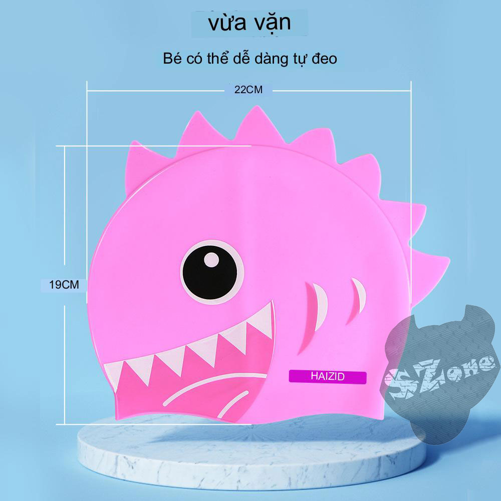 - Mũ bơi có hình dáng hoạt hình cá mập ngộ nghĩnh, đáng yêu, thu hút sự chú ý của các bé và tạo sự thích thú khi bơi lội.