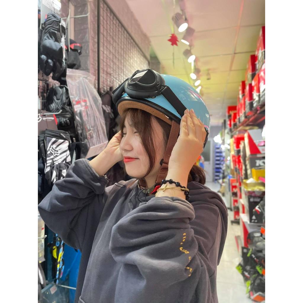 Mũ bảo hiểm nửa đầu freesize Rona hali viền bạc kèm kính phi công bạc Mũ bảo hiểm nửa đầu Rona haly viền bạc kèm kính phi công bạc cho nam và nữ đi xe