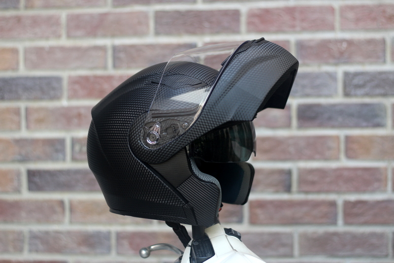 Royal M179 với thiết kế lật hàm sơn vân carbon vô cùng độc đáo giúp ae linh động thay đổi từ một chiếc fullface sang kiểu 3/4 khá dễ dàng. Vỏ bằng nhựa ABS nguyên