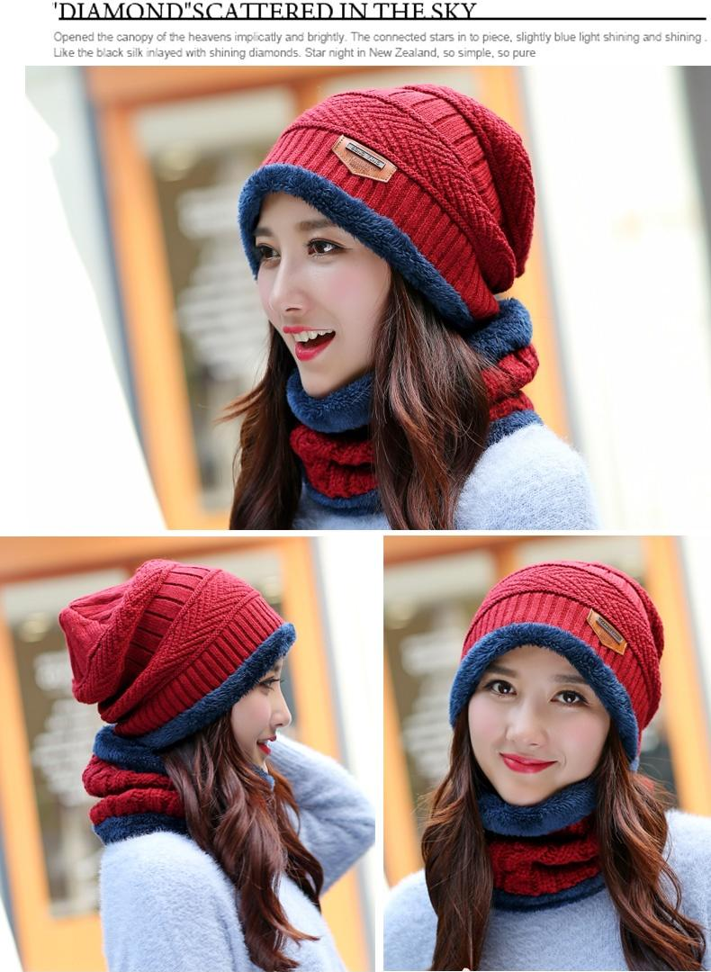 Sét mũ len kèm khăn quàng cổ và bịt tai ấm lót lông