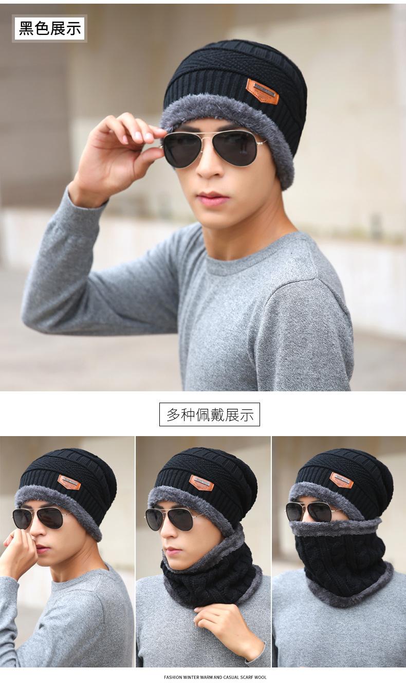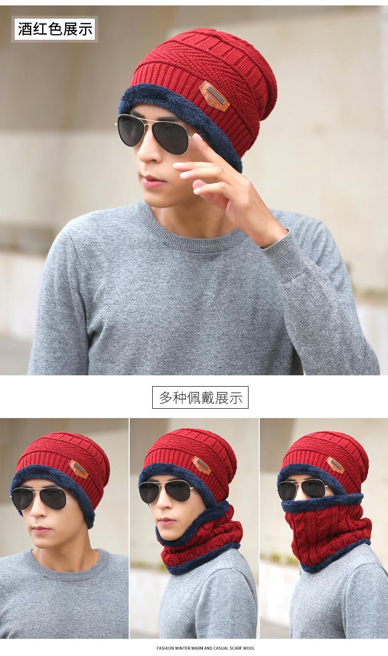 PVN55244 Mũ len cho nam kèm khăn choàng cổ mùa đông giữ ấm tốt