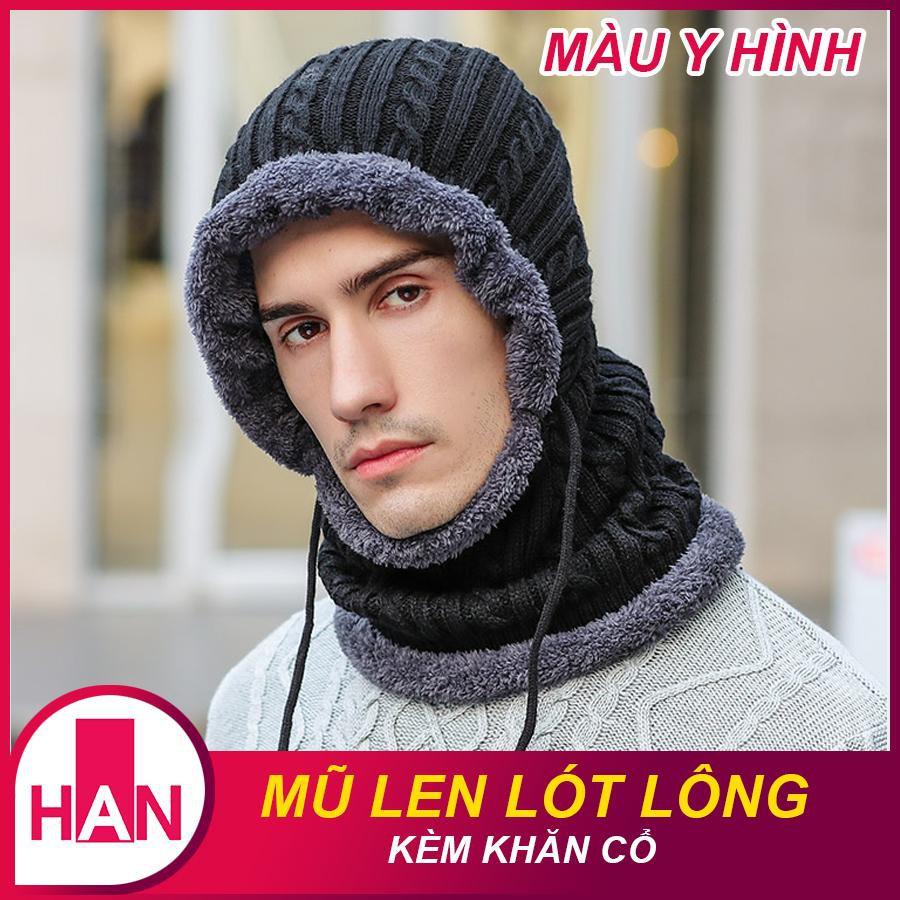 Thông tin Mũ len nam nữ lót lông liền khăn cổ siêu ấm mùa đông rét đậm - Mu len lot long trum co