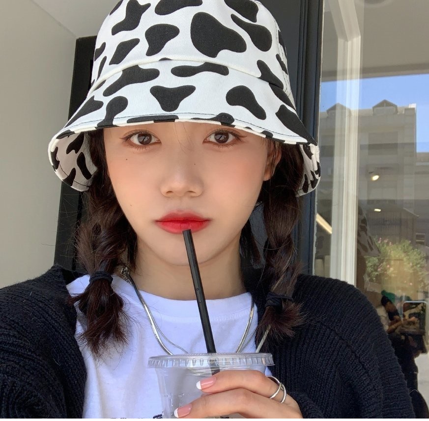 Mũ vành 2 mặt, bucket hat họa tiết bò sữa dễ thương