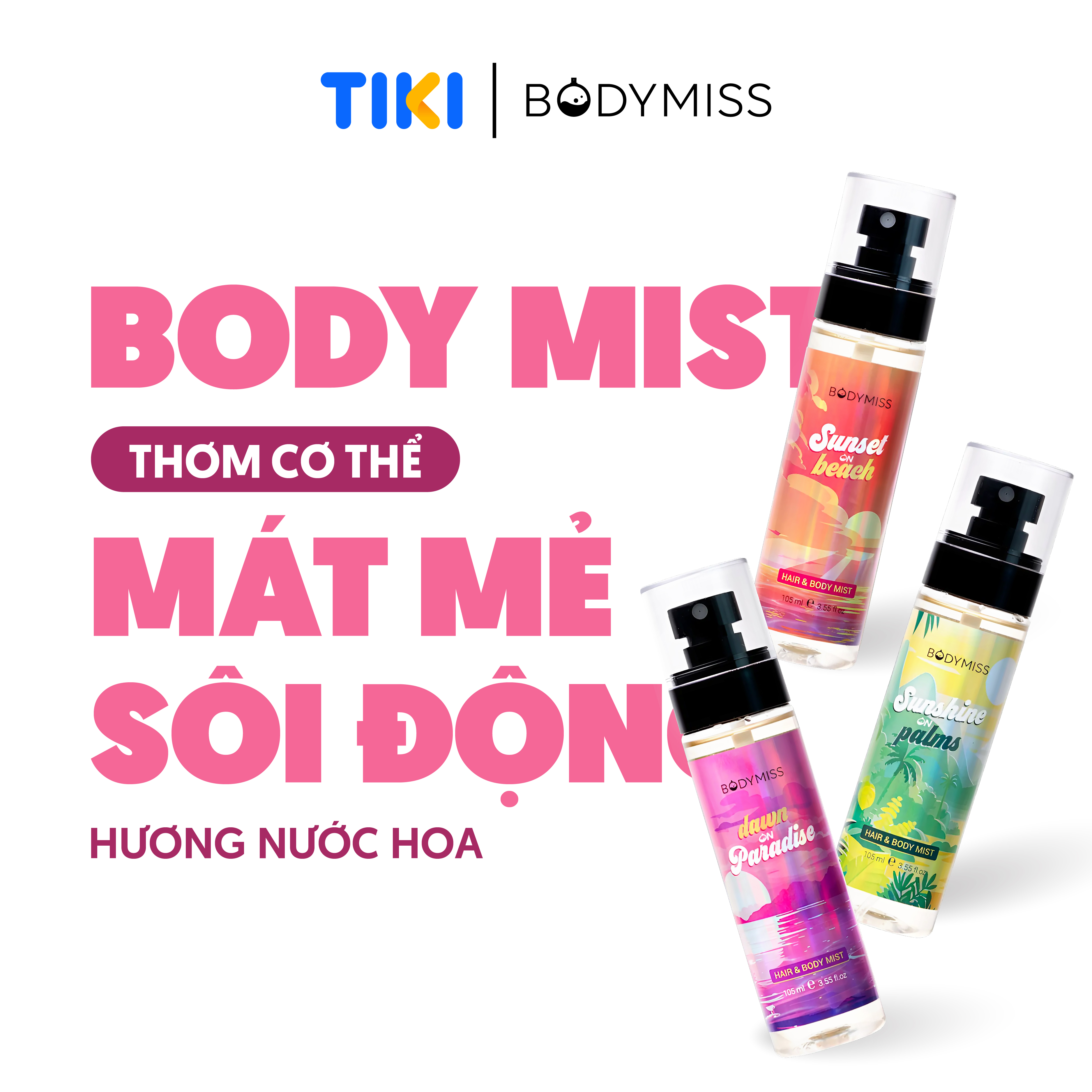 - GIỚI THIỆU SẢN PHẨM Body mist của BODYMISS với khả năng lưu hương lên đến 6 tiếng sẽ giúp chúng mình tăng 1000 điểm tự tin ngay lập tức, thoải mái đi học đi chơi cả ngày không sợ mùi cơ thể & mùi đồ ăn đeo bám. Body mist cực kì phù hợp với các bạn học sinh, sinh viên không chỉ vì hương thơm nhẹ nhàng, không nồng gắt như nước hoa mà còn “ghi điểm" bởi sự tiện dụng cao, dễ dàng mang theo sử dụng mọi lúc mọi nơi. Đặc biệt, BODYMISS còn có đa dạng lựa chọn nốt hương phù hợp cho mọi hoàn cảnh, sở thích, tâm trạng,... Mỗi mùi hương sẽ bao gồm 3 tầng hương đặc trưng riêng biệt, mang đến hương thơm độc đáo lưu giữ cả ngày dài, bất chấp đi học, đi chơi hay đi gặp crush thì cũng sẽ ghi điểm tuyệt đối đó nha.