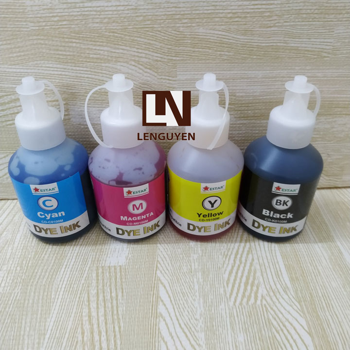 Tên gọi: Mực in phun màu dùng cho máy in phun Canon, Hp, Brother hệ 4 màu Gốc: Dye Dung tích: 100ml Xuất xứ: Trung Quốc Thương hiệu: Estar Hệ màu: Màu Vàng, Xanh, Đỏ,