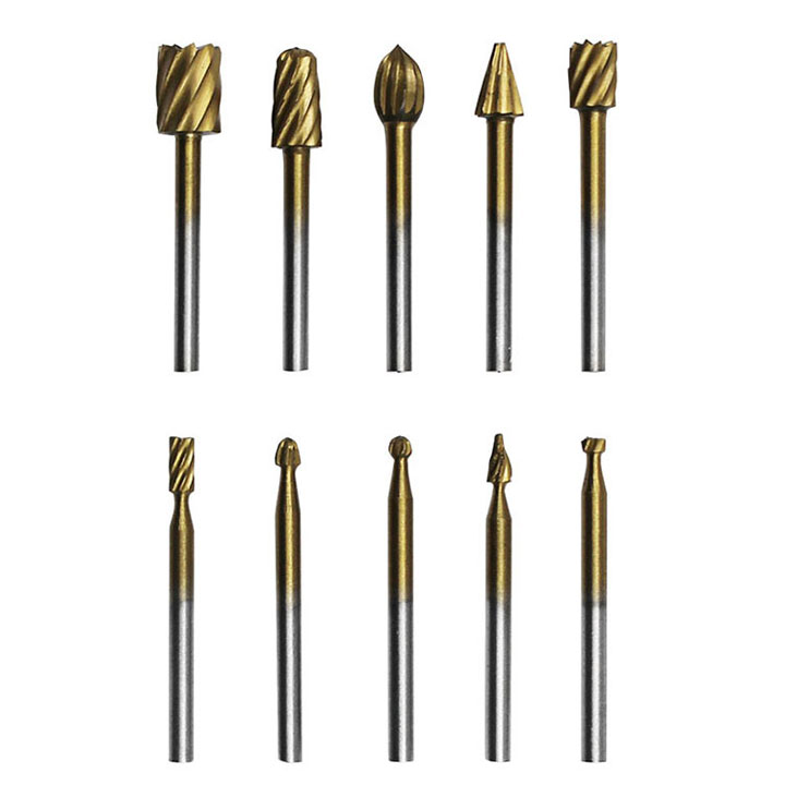 - ỨNG DỤNG Mũi mài khắc mạ titanium siêu cứng 10 mũi mài gỗ phụ kiện máy khoan mài mini
