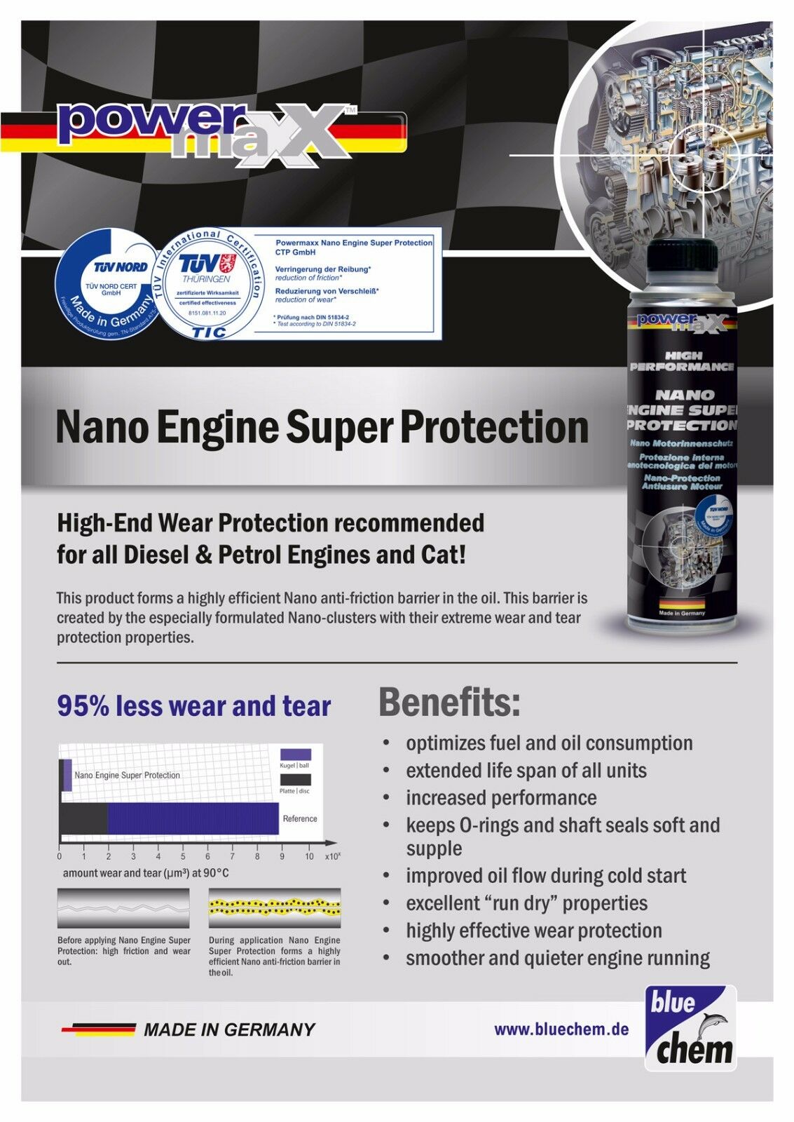 - Nano Bảo Vệ Động Cơ Cao Cấp Bluechem Nano Engine Super Protection có hiệu quả cao trong việc chống bào mòn tất cả bề mặt bên trong động cơ và các thiết bị như