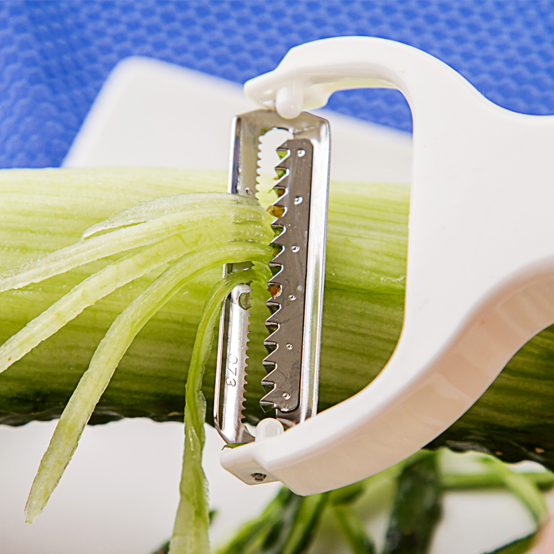 Nâng cao quá trình chuẩn bị lột da của bạn. Dụng cụ gọt vỏ nhiều lưỡi, hai trong một của chúng tôi cung cấp cả lưỡi thẳng và lưỡi Julienne mà bạn chỉ cần chọn