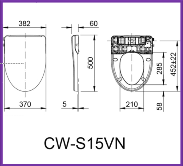 Thông số kỹ thuật: Tên sản phẩm: Nắp rửa cơ Mã sản phẩm: CW-S15VN Điều chỉnh nước: 2 tay vặn dùng cho rửa đại tiện và rửa phụ nữ Số lỗ phun: Đại tiện 3