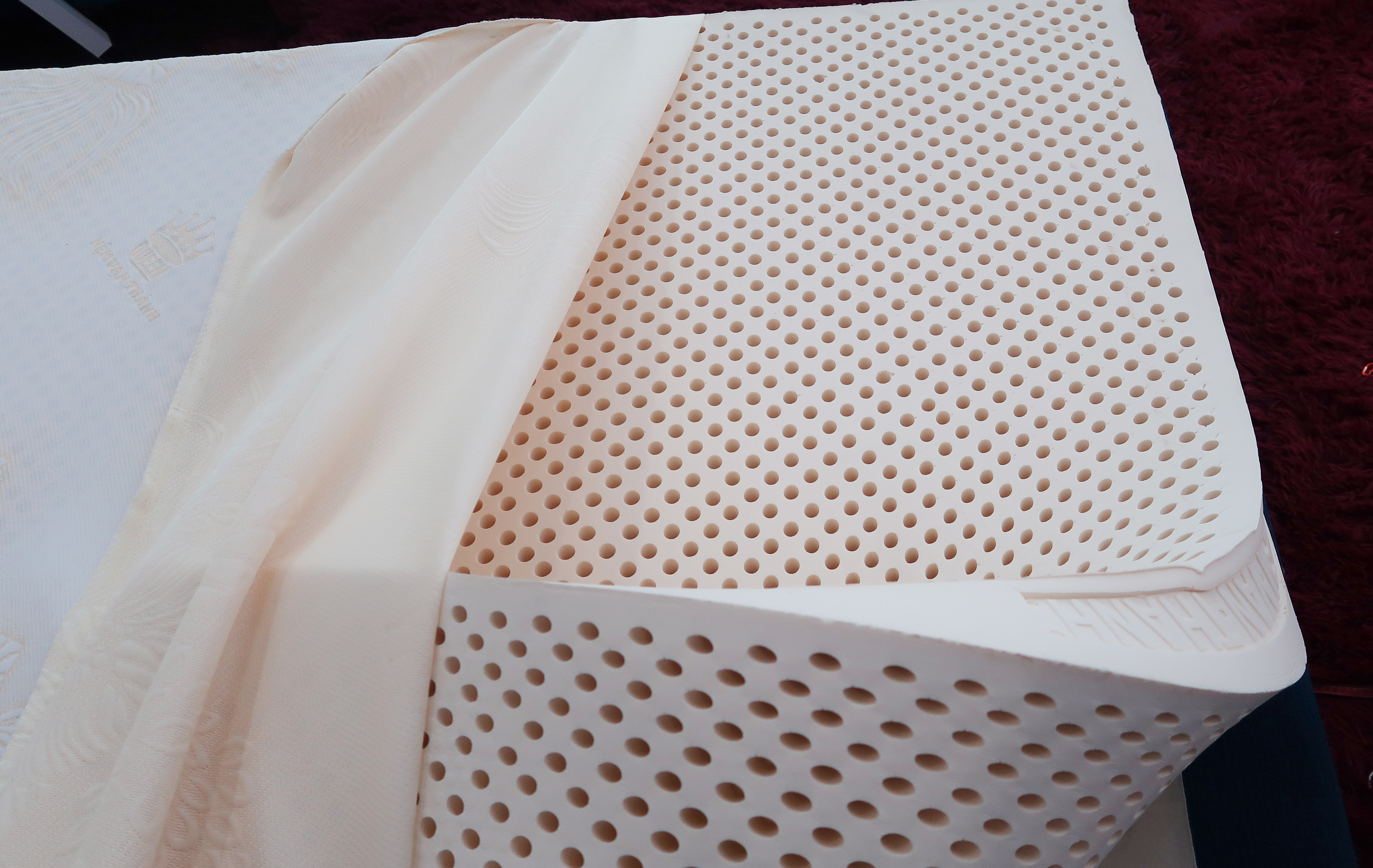 Nệm cao su Vinamattress mặt lổ vài thun xuyên kim Mô tả: Vinarubber Pure chọn lọc từ nguồn nguyên liệu 100% cao su thiên nhiên sạch khuẩn, mang thiết kế tinh giản với hơn 5000