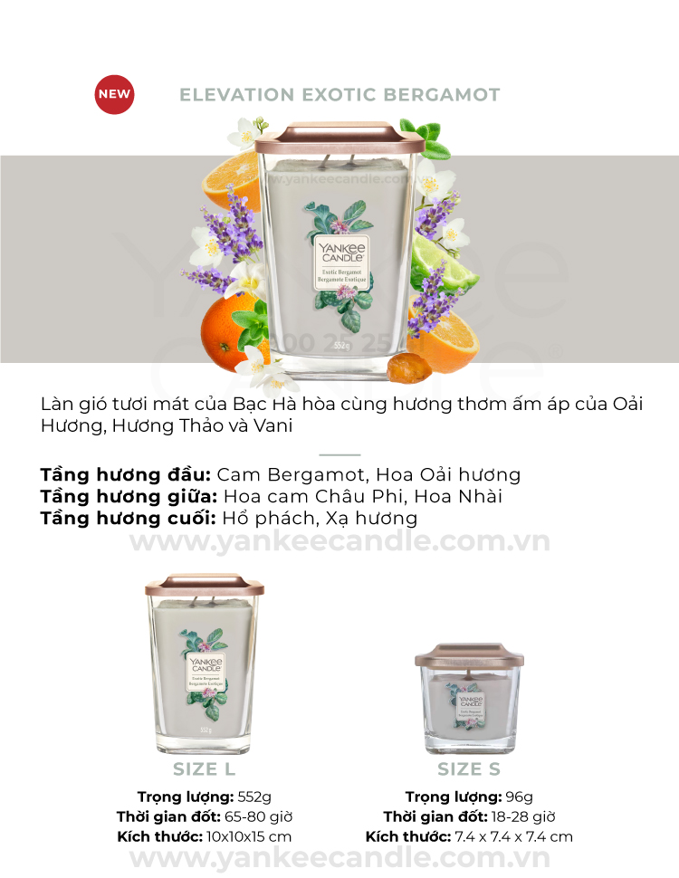✨Nến ly vuông Elevation Yankee Candle size S - Exotic Bergamot (96g)