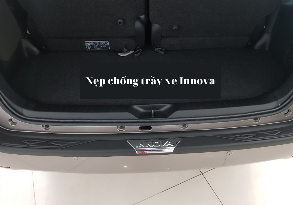 - Nẹp chống trầy cốp sau xe Innova được thiết kế ôm sát vào cản sau xe, được trang bị miếng ốp Inox ở giữa nẹp để tạo điểm nhấn và nẹp chống trầy được trang trí khắc sâu để không gây nhàm chán và tạo điểm nhấn.