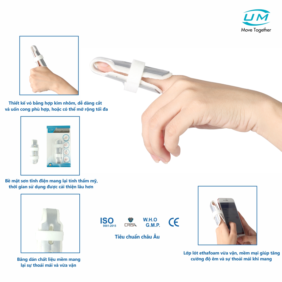 Nẹp ngón tay kín UM (E01) có cấu trúc gồm miếng nẹp nhôm chắc chắn đảm bảo bất động cứng nhắc. Bề mặt sơn tĩnh điện mang lại tính thẩm mỹ tốt, lớp lót ethafoam giúp tăng cường đệm, mang lại sự thoải mái tối đa. CHỈ ĐỊNH