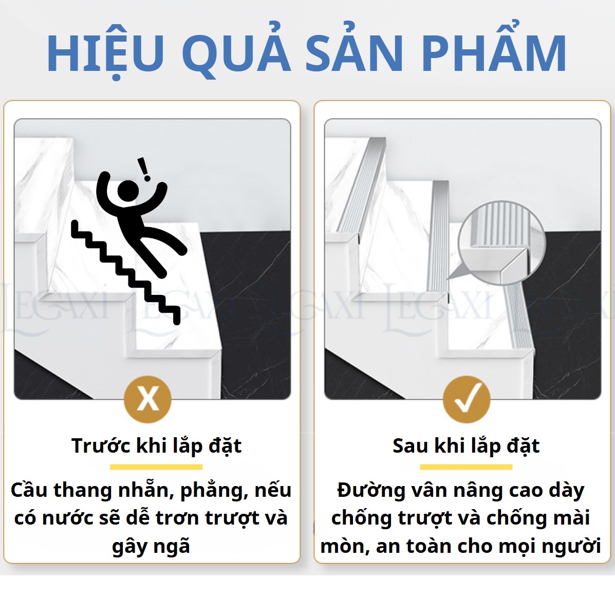 Phù hợp với nhiều loại bậc thang từ bậc thang thông thường cho đến bậc thang đá hoa cương có phần chìa ra nguy hiểm,...